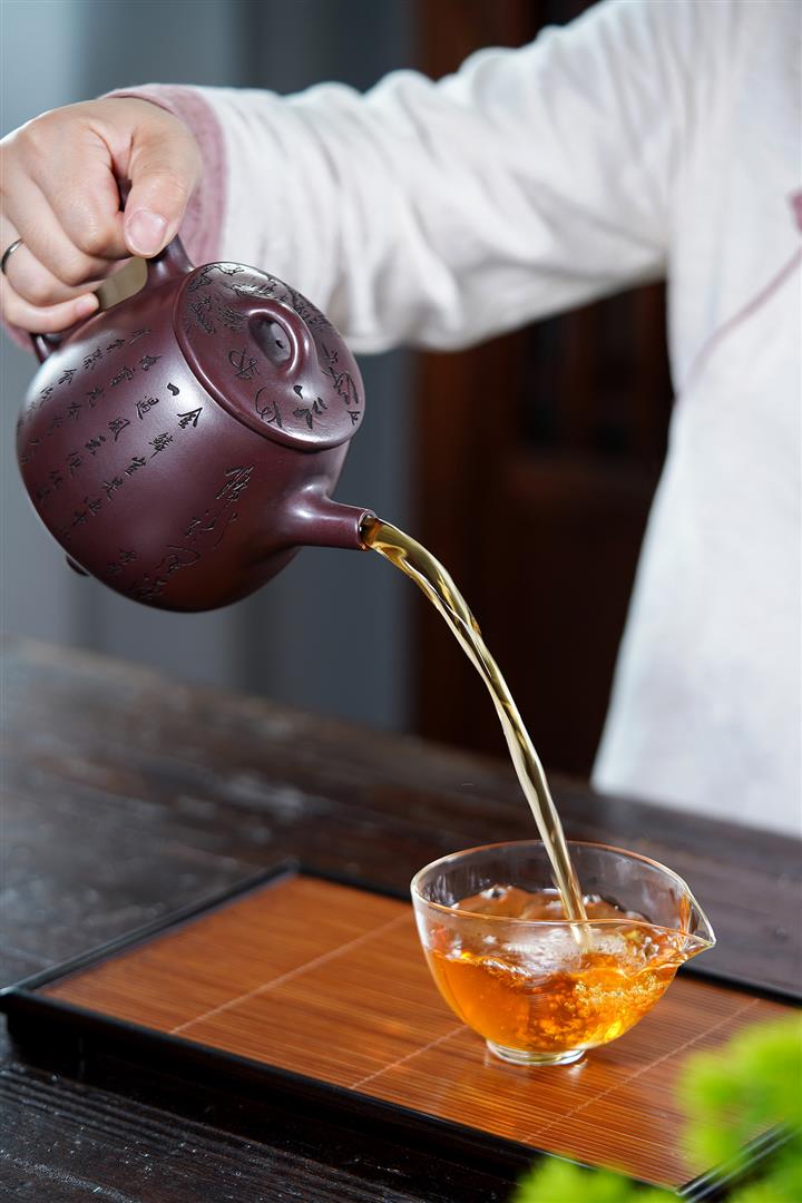 【泥料特點】砂土氣重,似淳實農民,日久使用,漸露鋒芒,養成變化,溫潤莊重。紫砂是壹種雙重氣孔結構的多孔性材質,氣孔微細,密度高。用紫砂壺沏茶,不失原味,且香不渙散,得茶之真香真味。紫砂使用越久,壺身色澤越發光亮照人,氣韻溫雅。紫砂壺長久使用器身會因撫摸擦拭,變得越發溫潤光澤。