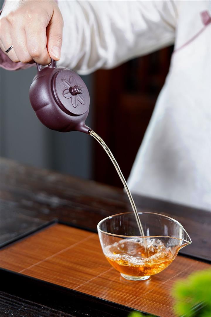 【泥料特點】砂土氣重,似淳實農民,日久使用,漸露鋒芒,養成變化,溫潤莊重。紫砂是壹種雙重氣孔結構的多孔性材質,氣孔微細,密度高。用紫砂壺沏茶,不失原味,且香不渙散,得茶之真香真味。紫砂使用越久,壺身色澤越發光亮照人,氣韻溫雅。紫砂壺長久使用器身會因撫摸擦拭,變得越發溫潤光澤。