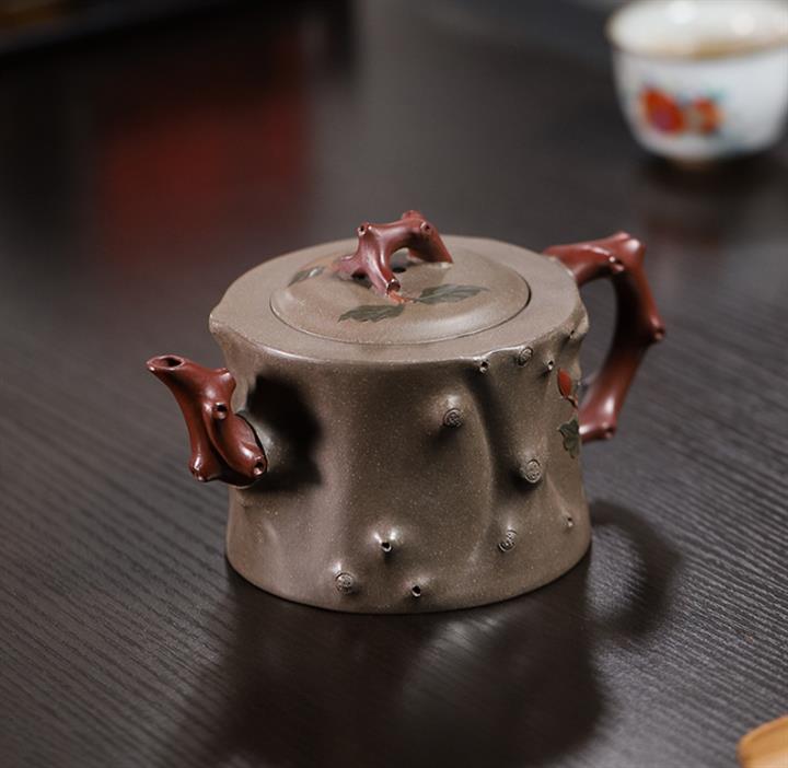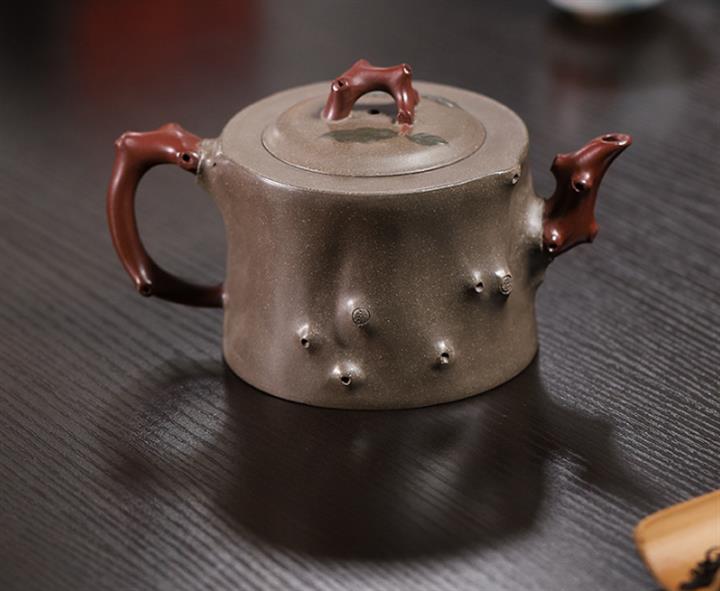 【泥料特點】砂土氣重,似淳實農民,日久使用,漸露鋒芒,養成變化,溫潤莊重。紫砂是壹種雙重氣孔結構的多孔性材質,氣孔微細,密度高。用紫砂壺沏茶,不失原味,且香不渙散,得茶之真香真味。紫砂使用越久,壺身色澤越發光亮照人,氣韻溫雅。紫砂壺長久使用器身會因撫摸擦拭,變得越發溫潤光澤。