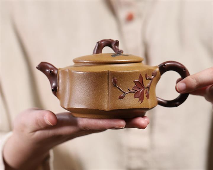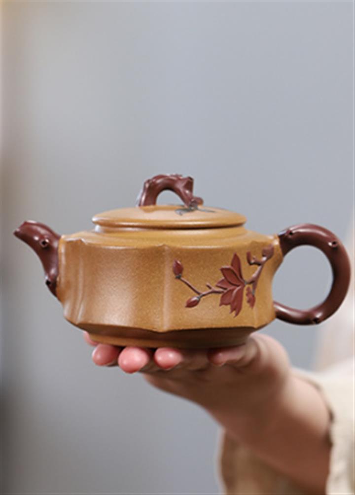 手工製原礦紫泥刻繪竹韻壺POT3929