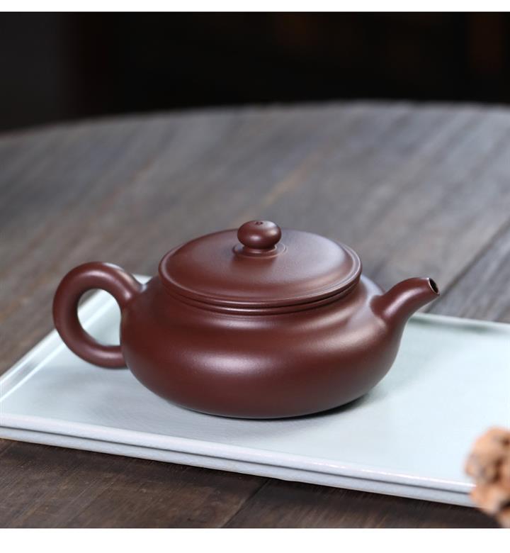 220cc原礦紫朱泥扁腹泡茶壺POT8715