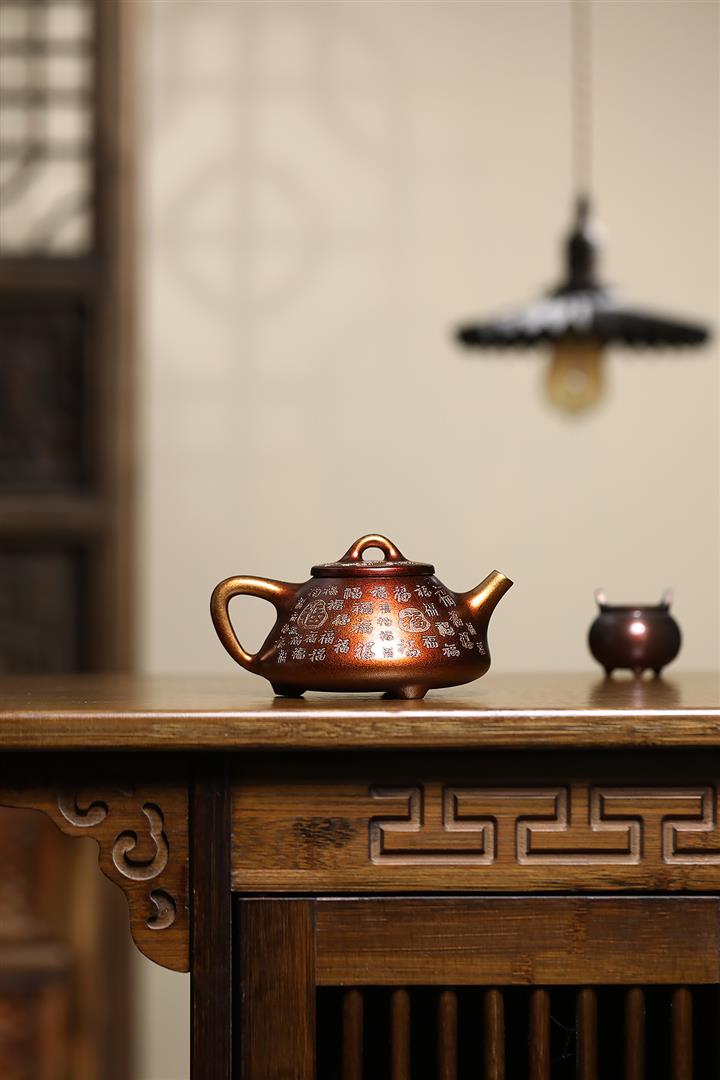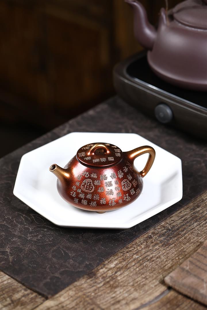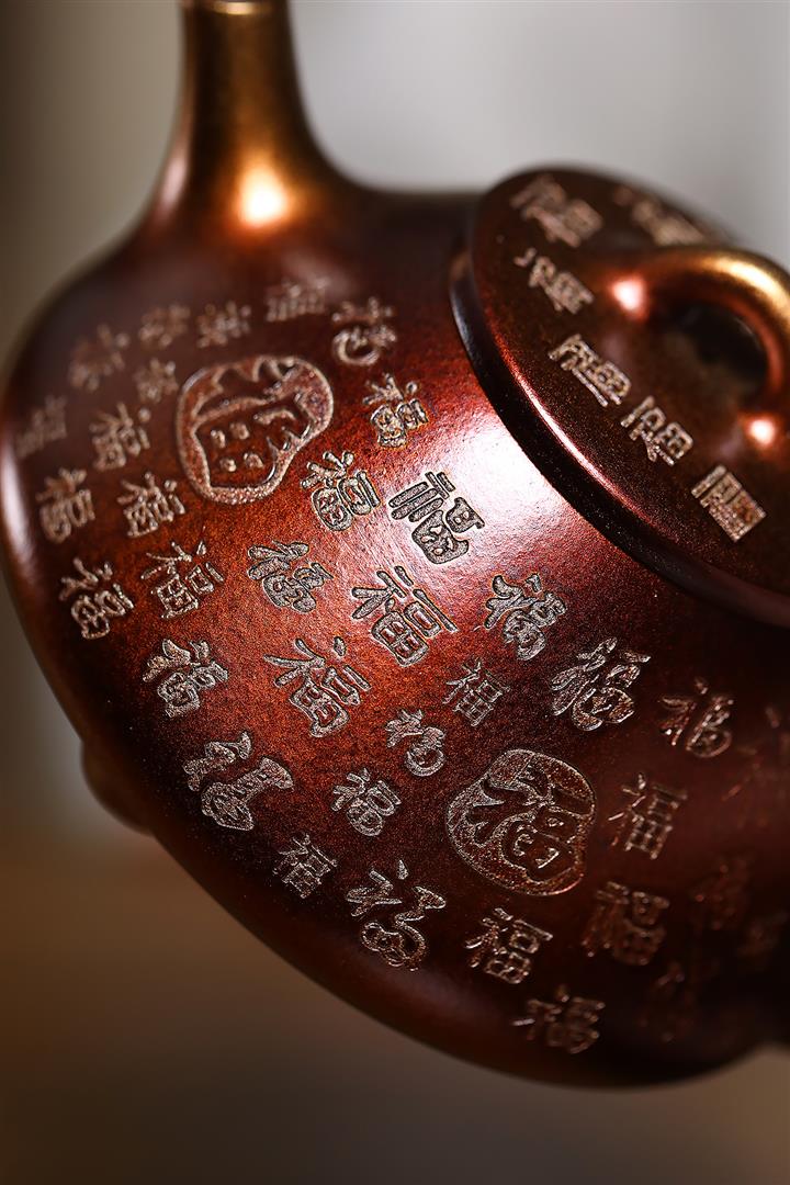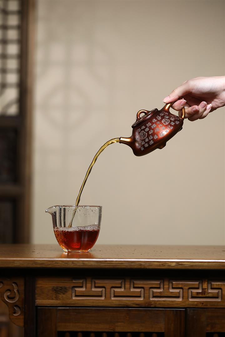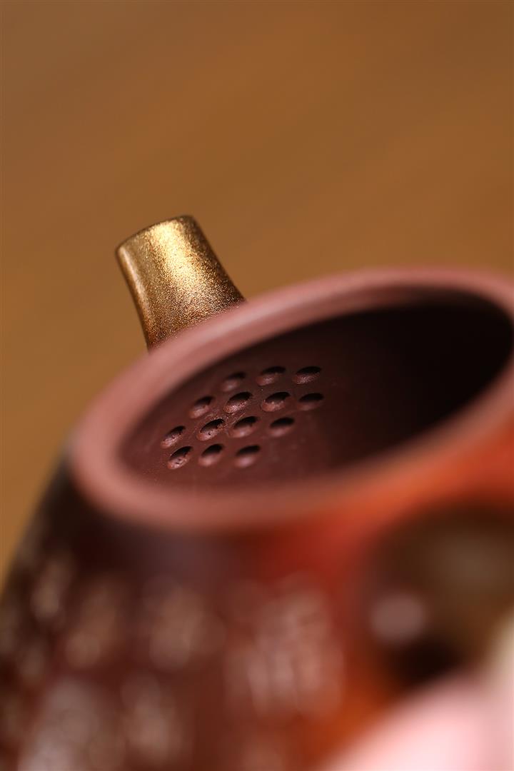 【泥料特點】砂土氣重,似淳實農民,日久使用,漸露鋒芒,養成變化,溫潤莊重。紫砂是壹種雙重氣孔結構的多孔性材質,氣孔微細,密度高。用紫砂壺沏茶,不失原味,且香不渙散,得茶之真香真味。紫砂使用越久,壺身色澤越發光亮照人,氣韻溫雅。紫砂壺長久使用器身會因撫摸擦拭,變得越發溫潤光澤。