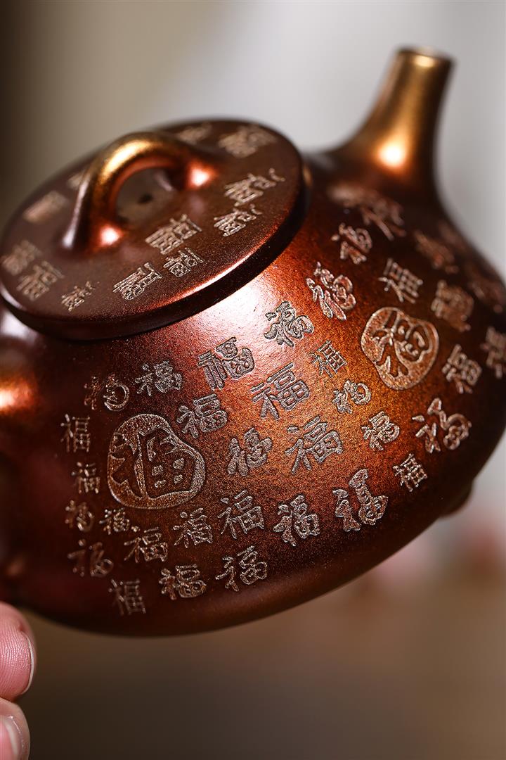 【作品介紹】此款壺形線條流暢,壺把,壺嘴,壺身壹氣呵成栩栩如生,是收藏把玩的好壺,泥料色澤古樸典雅,日久使用,漸露鋒芒,養成變化快,溫潤莊重,用其泡茶,使用的年代久,壺身就溫潤,泡出來的茶湯也就醇郁芳馨。