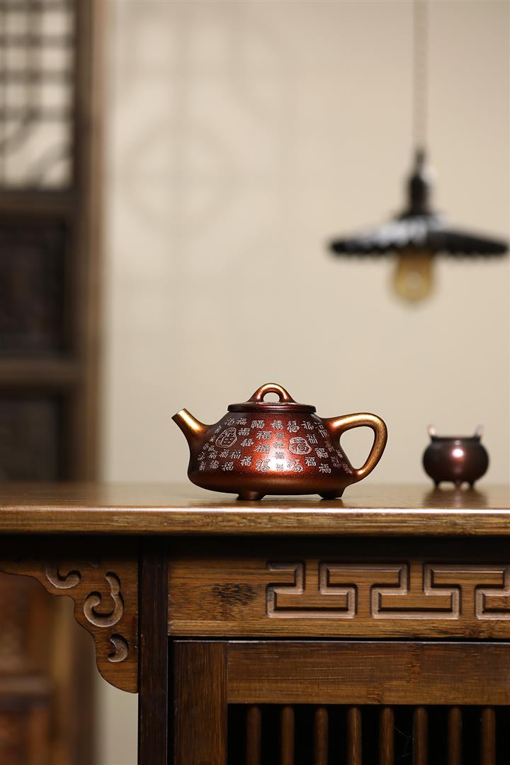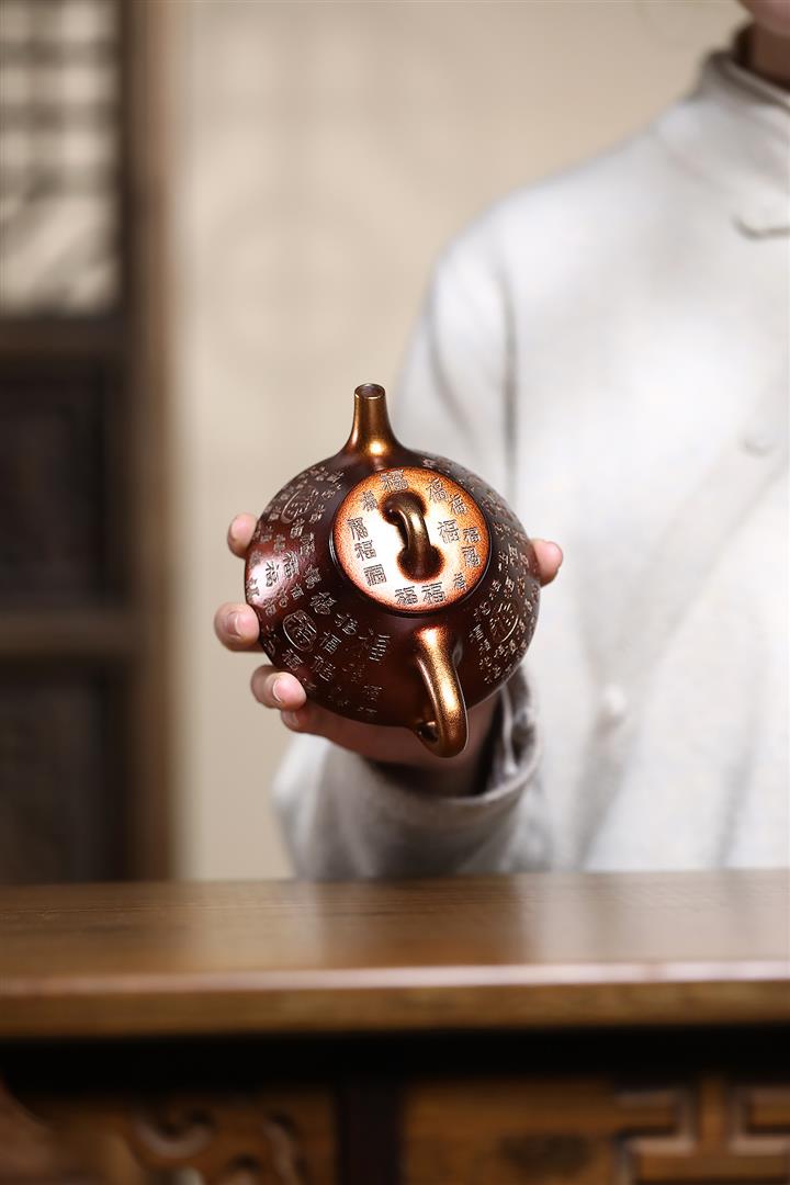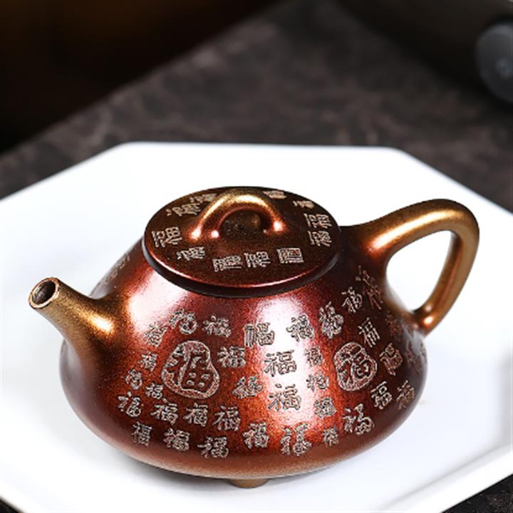 250cc原礦玄鐵石黃知足常樂泡茶壺POT8667