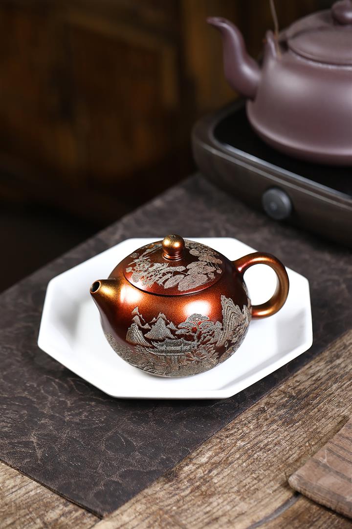 【泥料特點】砂土氣重,似淳實農民,日久使用,漸露鋒芒,養成變化,溫潤莊重。紫砂是壹種雙重氣孔結構的多孔性材質,氣孔微細,密度高。用紫砂壺沏茶,不失原味,且香不渙散,得茶之真香真味。紫砂使用越久,壺身色澤越發光亮照人,氣韻溫雅。紫砂壺長久使用器身會因撫摸擦拭,變得越發溫潤光澤。