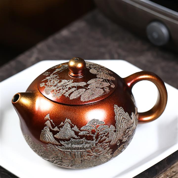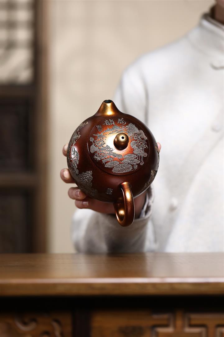 【作品介紹】此款壺形線條流暢,壺把,壺嘴,壺身壹氣呵成栩栩如生,是收藏把玩的好壺,泥料色澤古樸典雅,日久使用,漸露鋒芒,養成變化快,溫潤莊重,用其泡茶,使用的年代久,壺身就溫潤,泡出來的茶湯也就醇郁芳馨。