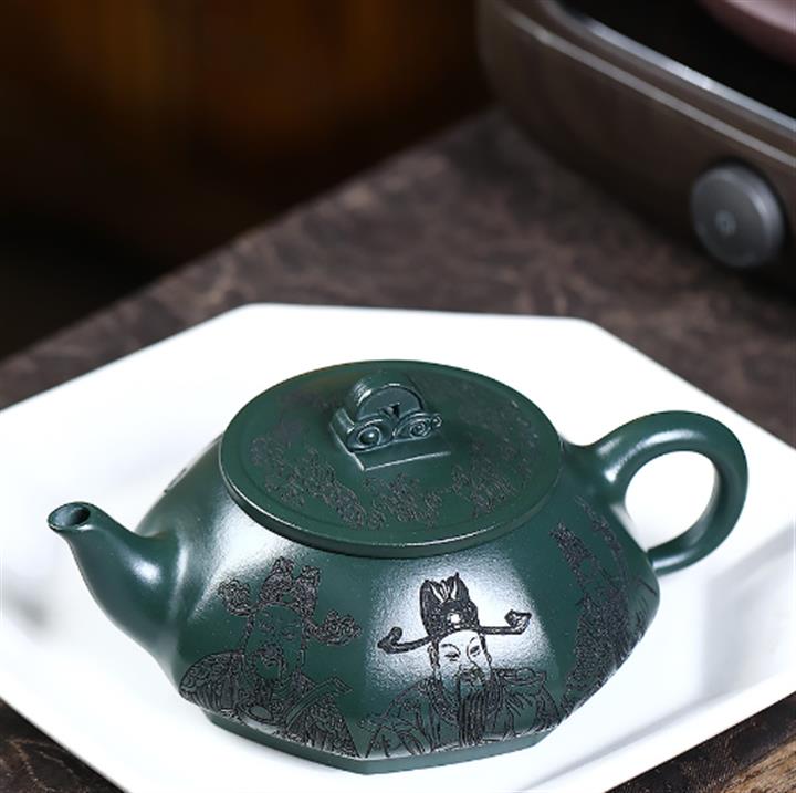 【作品介紹】此款壺形線條流暢,壺把,壺嘴,壺身壹氣呵成栩栩如生,是收藏把玩的好壺,泥料色澤古樸典雅,日久使用,漸露鋒芒,養成變化快,溫潤莊重,用其泡茶,使用的年代久,壺身就溫潤,泡出來的茶湯也就醇郁芳馨。