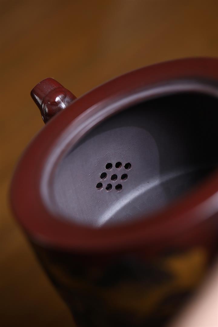 辛·原礦五彩段太湖石竹趣紫砂壺POT6160