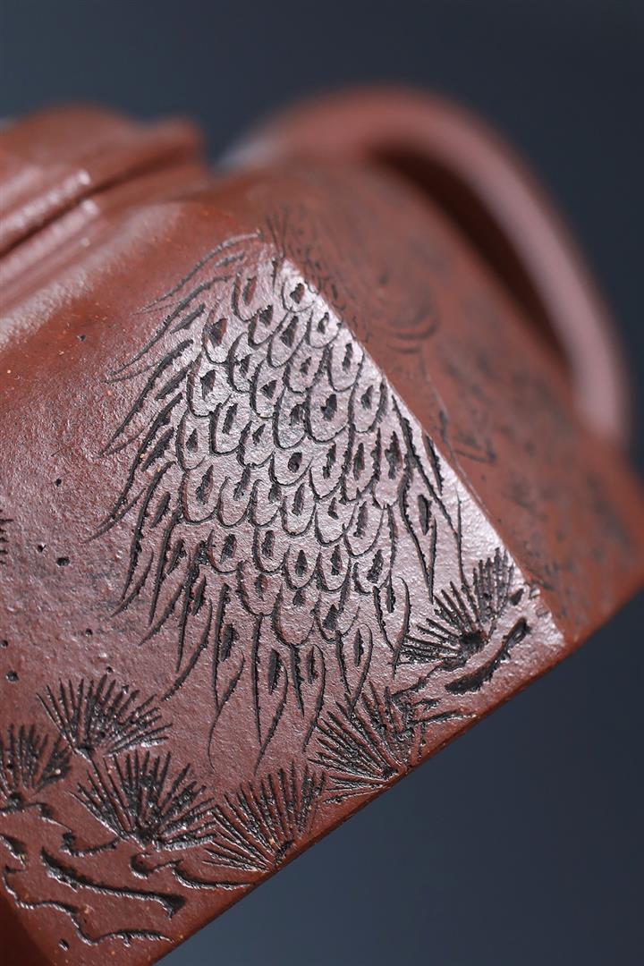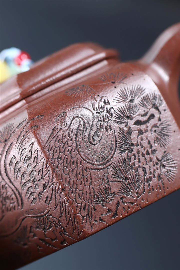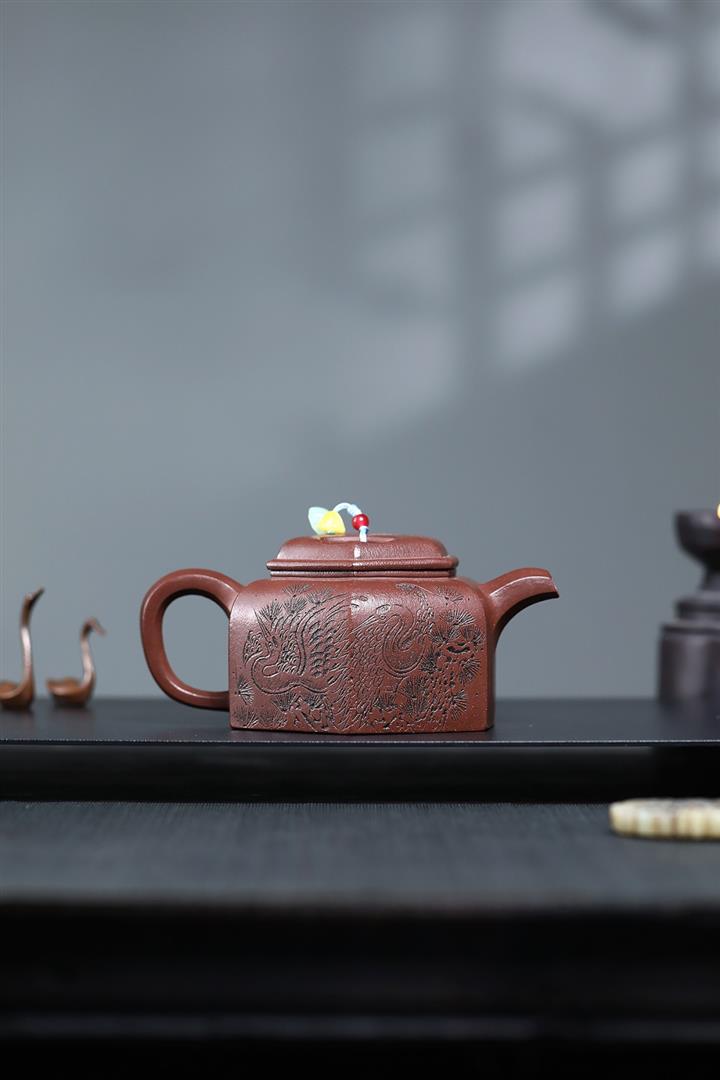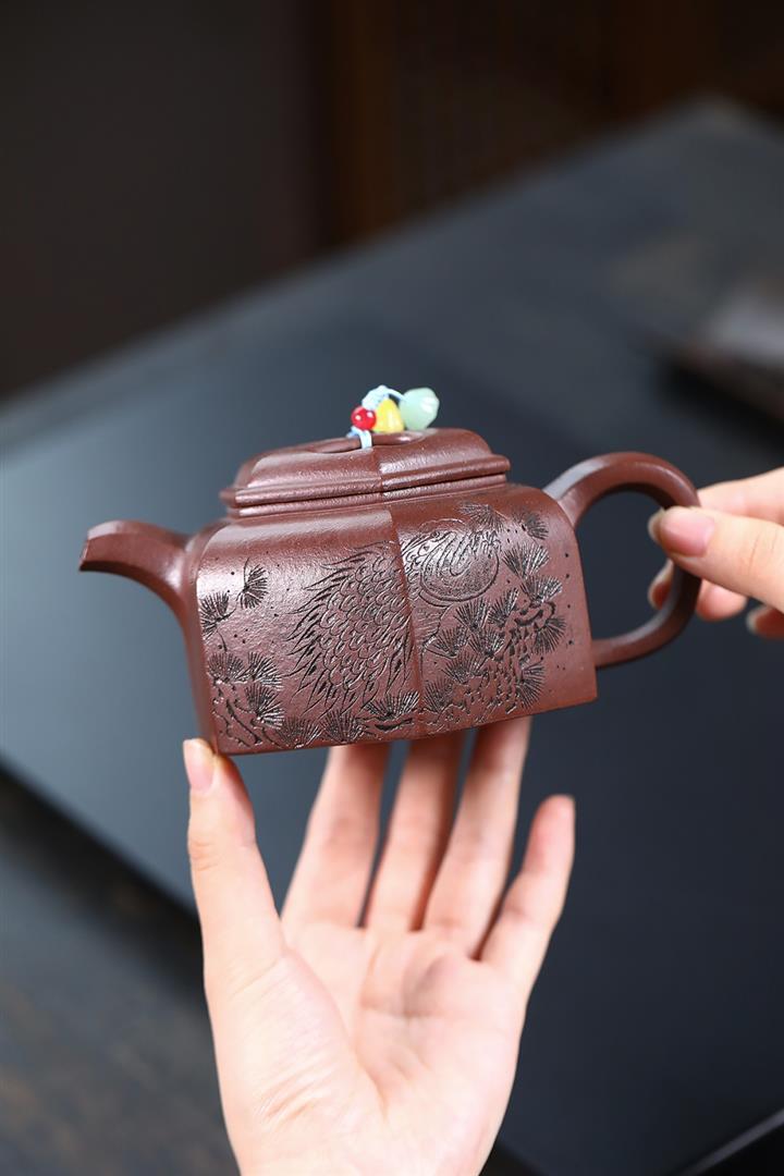 340cc原礦紫泥方骨鶴心牛蓋蓮子茶壺POT8735