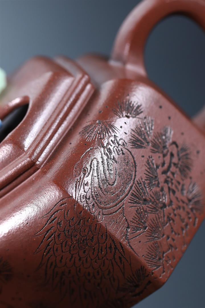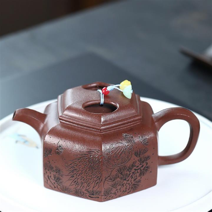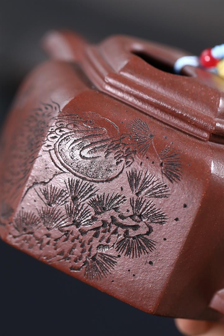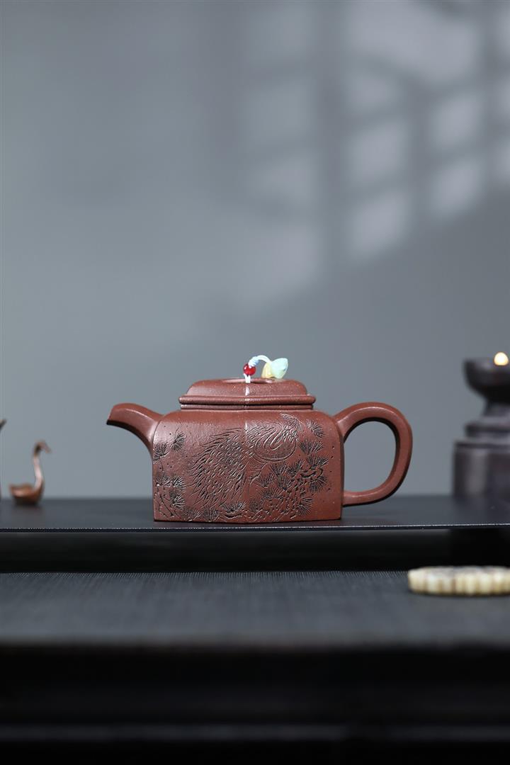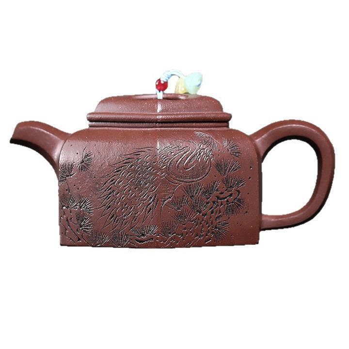 340cc原礦紫泥方骨鶴心牛蓋蓮子茶壺POT8735
