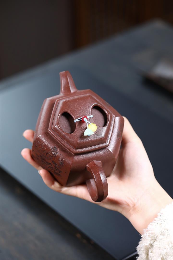 【作品介紹】此款壺形線條流暢,壺把,壺嘴,壺身壹氣呵成栩栩如生,是收藏把玩的好壺,泥料色澤古樸典雅,日久使用,漸露鋒芒,養成變化快,溫潤莊重,用其泡茶,使用的年代久,壺身就溫潤,泡出來的茶湯也就醇郁芳馨。