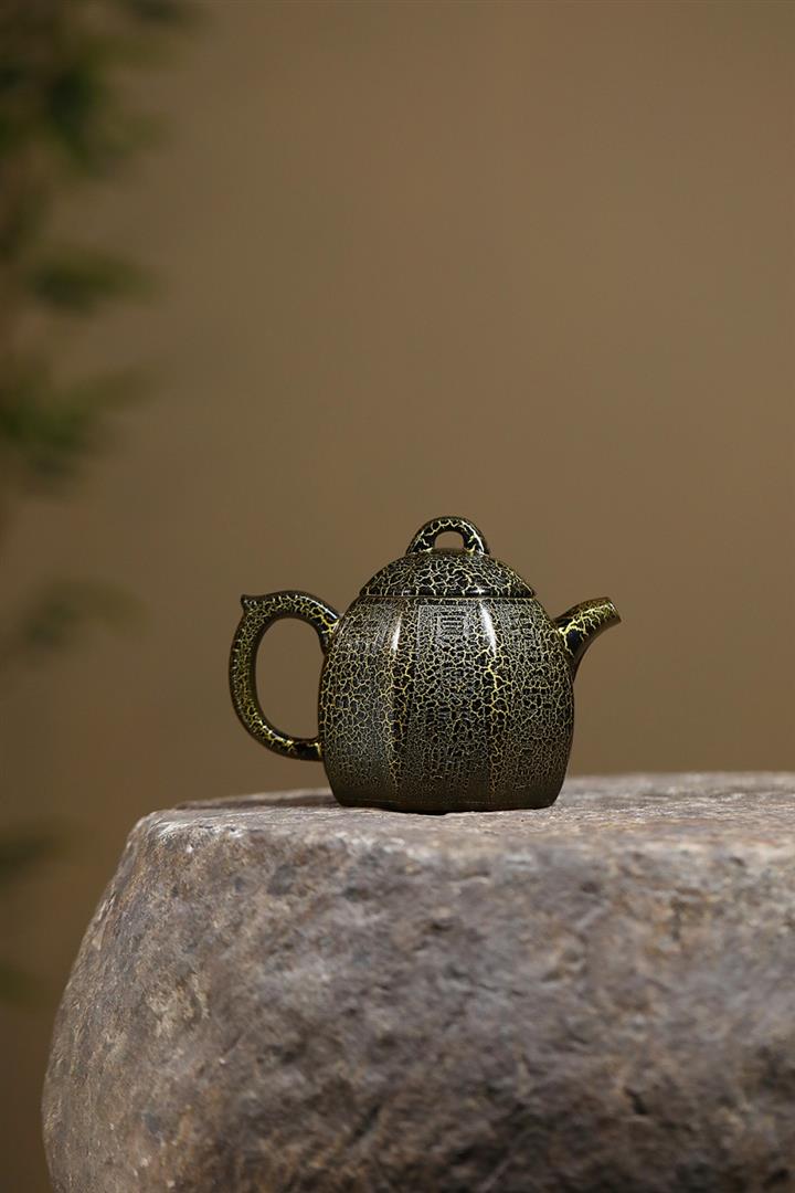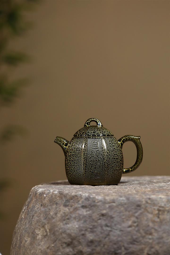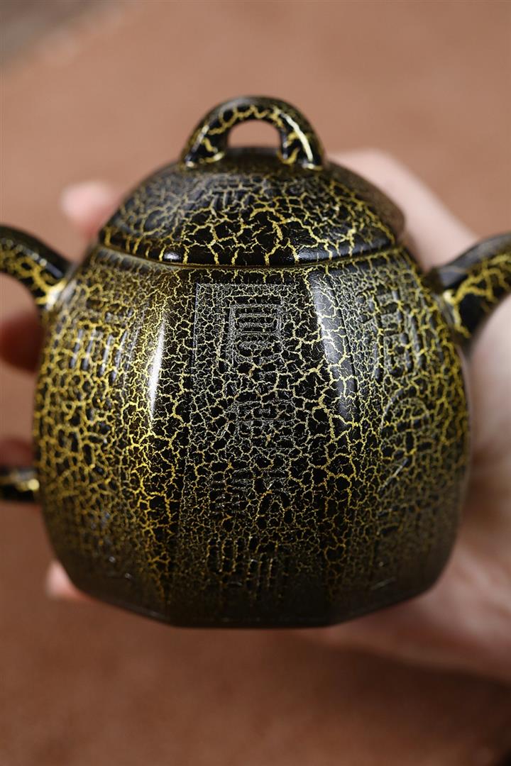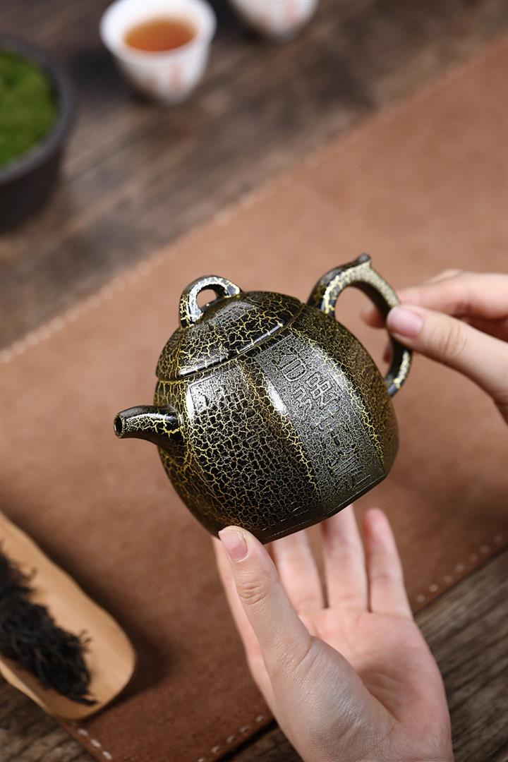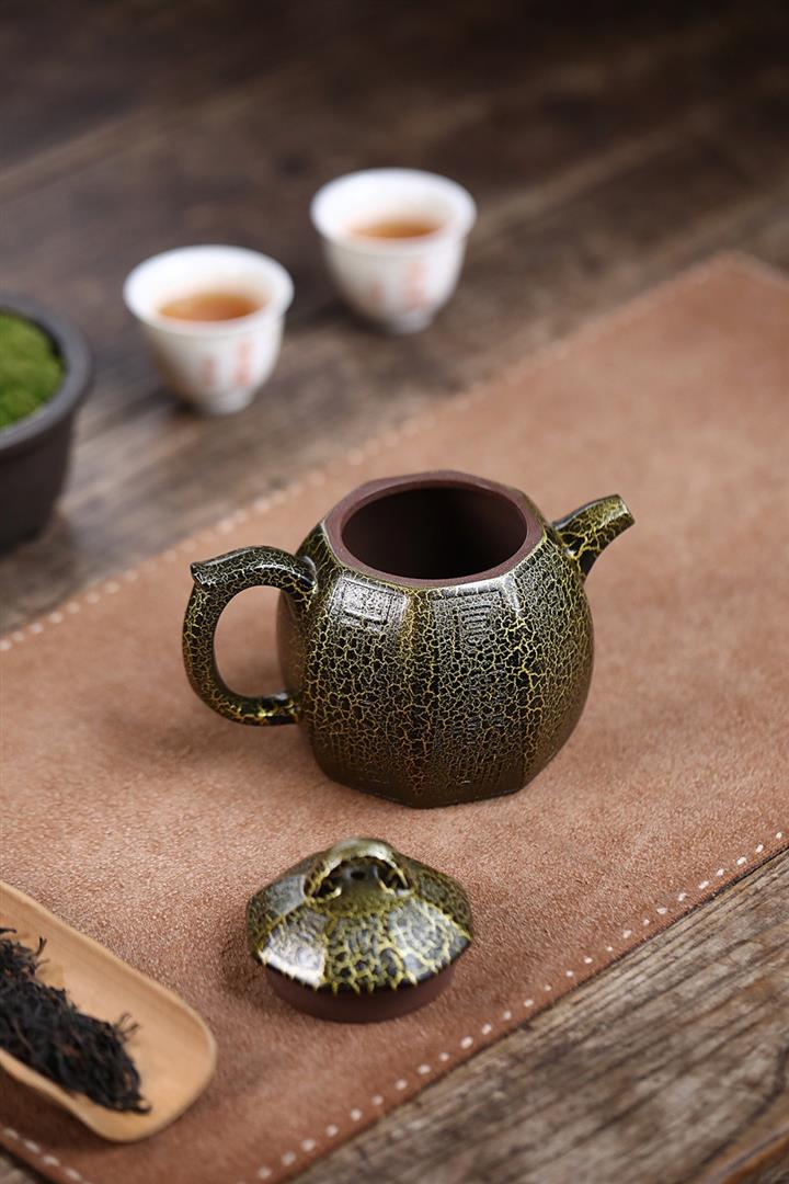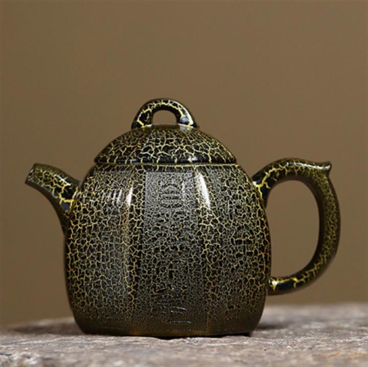 280cc原礦紫泥蛇紋鎏金八方秦權泡茶壺POT8739