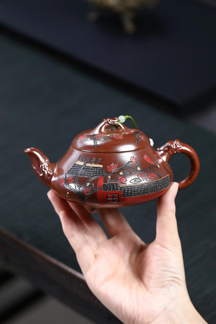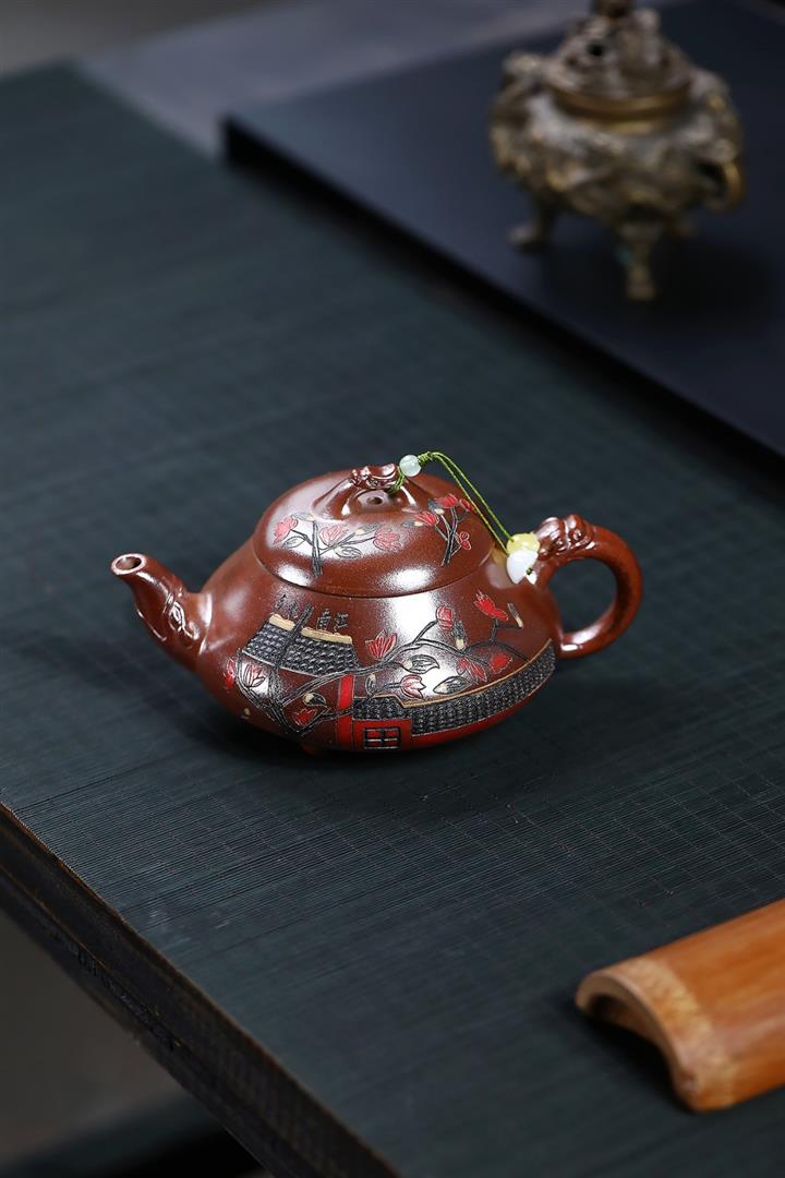 【作品介紹】此款壺形線條流暢,壺把,壺嘴,壺身壹氣呵成栩栩如生,是收藏把玩的好壺,泥料色澤古樸典雅,日久使用,漸露鋒芒,養成變化快,溫潤莊重,用其泡茶,使用的年代久,壺身就溫潤,泡出來的茶湯也就醇郁芳馨。