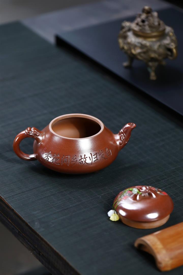 【泥料特點】砂土氣重,似淳實農民,日久使用,漸露鋒芒,養成變化,溫潤莊重。紫砂是壹種雙重氣孔結構的多孔性材質,氣孔微細,密度高。用紫砂壺沏茶,不失原味,且香不渙散,得茶之真香真味。紫砂使用越久,壺身色澤越發光亮照人,氣韻溫雅。紫砂壺長久使用器身會因撫摸擦拭,變得越發溫潤光澤。