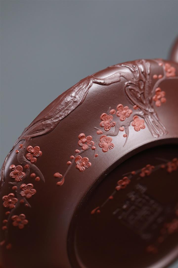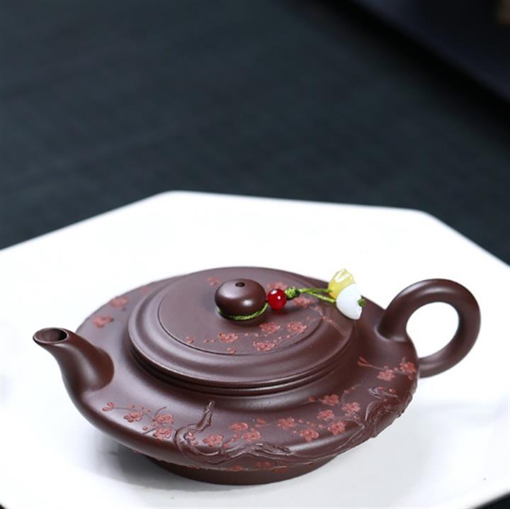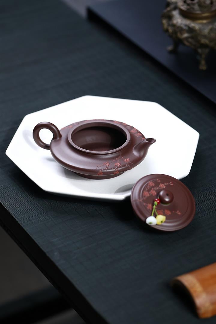 150cc原礦紫朱泥傲梅虛扁茶壺POT8755