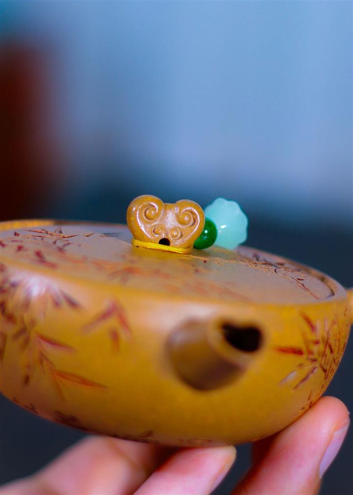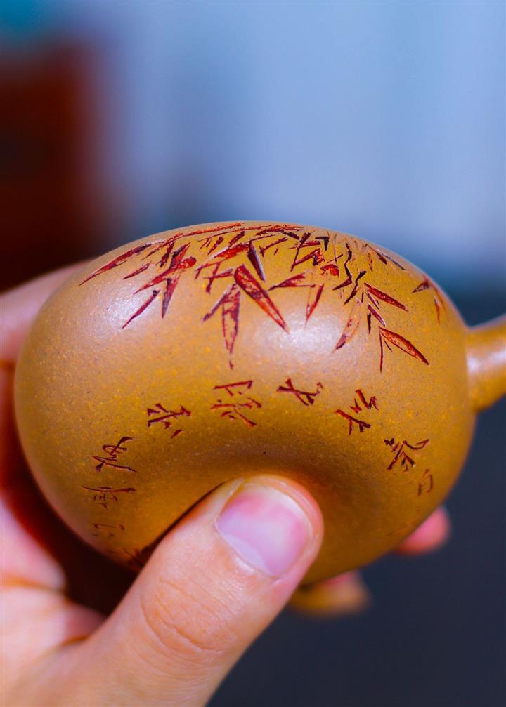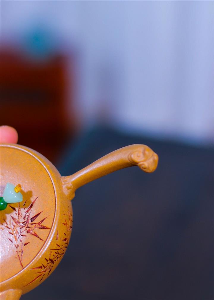 80cc原礦黃金段泥竹影唐羽側把茶壺POT8759