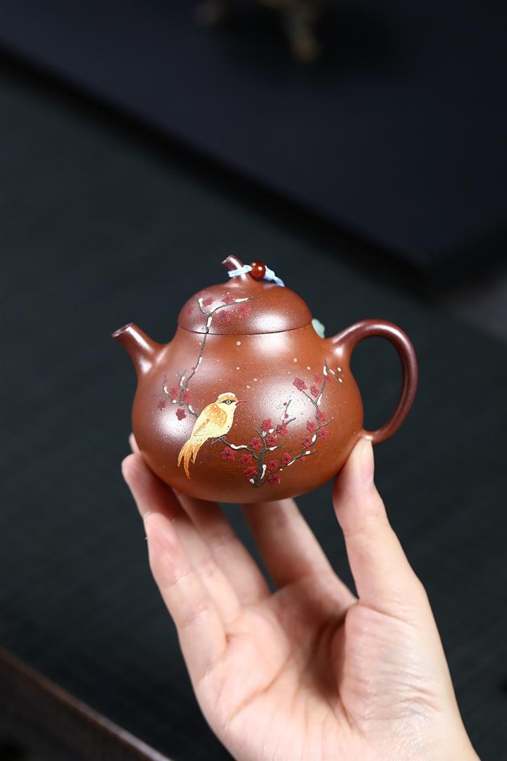 【作品介紹】此款壺形線條流暢,壺把,壺嘴,壺身壹氣呵成栩栩如生,是收藏把玩的好壺,泥料色澤古樸典雅,日久使用,漸露鋒芒,養成變化快,溫潤莊重,用其泡茶,使用的年代久,壺身就溫潤,泡出來的茶湯也就醇郁芳馨。