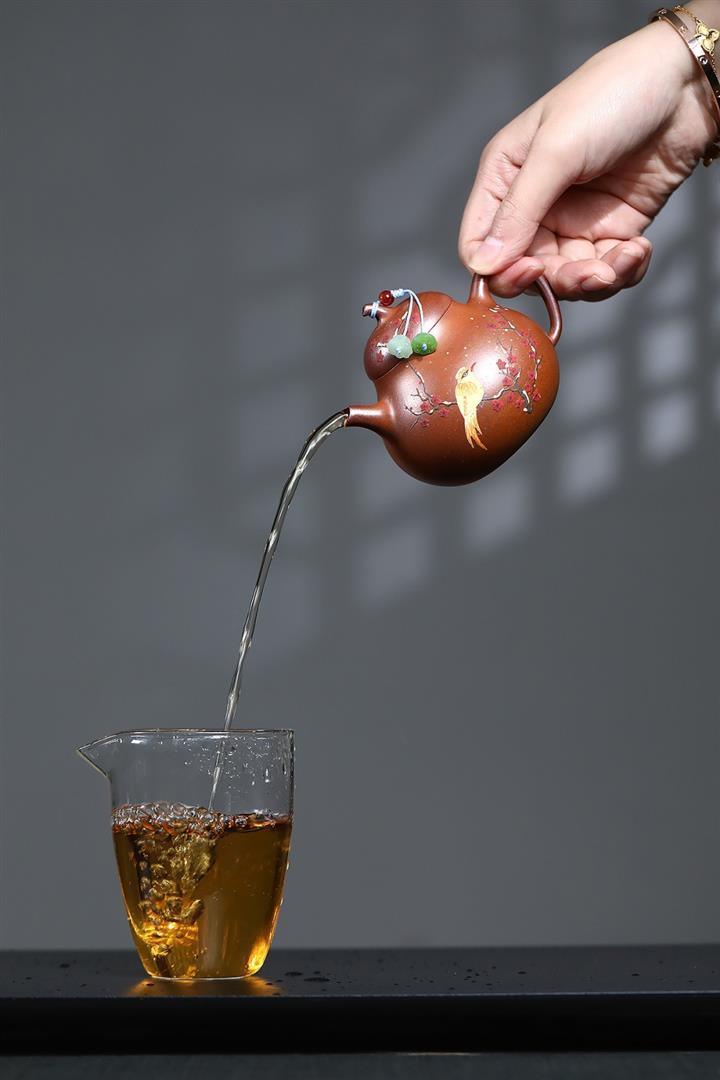 【泥料特點】砂土氣重,似淳實農民,日久使用,漸露鋒芒,養成變化,溫潤莊重。紫砂是壹種雙重氣孔結構的多孔性材質,氣孔微細,密度高。用紫砂壺沏茶,不失原味,且香不渙散,得茶之真香真味。紫砂使用越久,壺身色澤越發光亮照人,氣韻溫雅。紫砂壺長久使用器身會因撫摸擦拭,變得越發溫潤光澤。