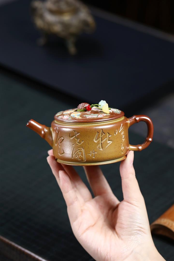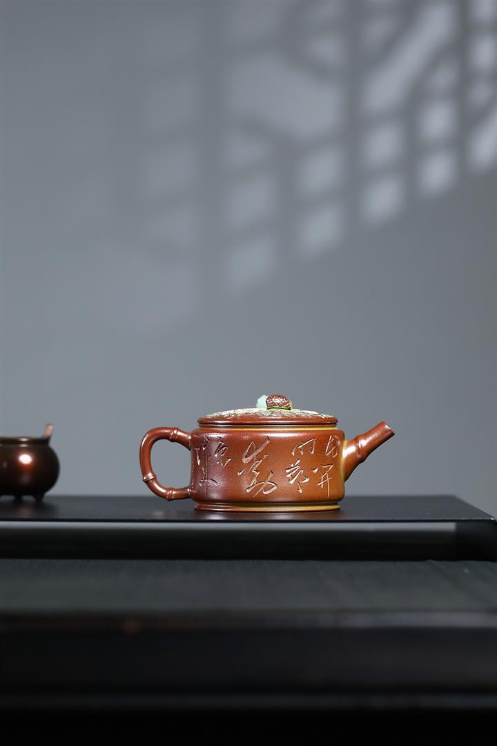 340cc原礦龍骨金砂竹林七賢竹筒茶壺POT8063