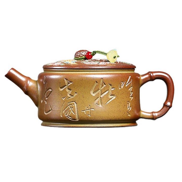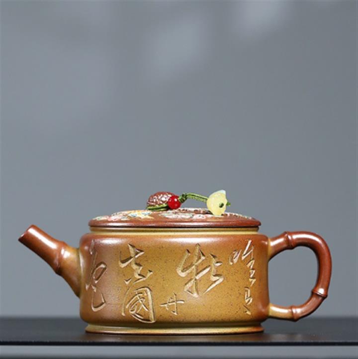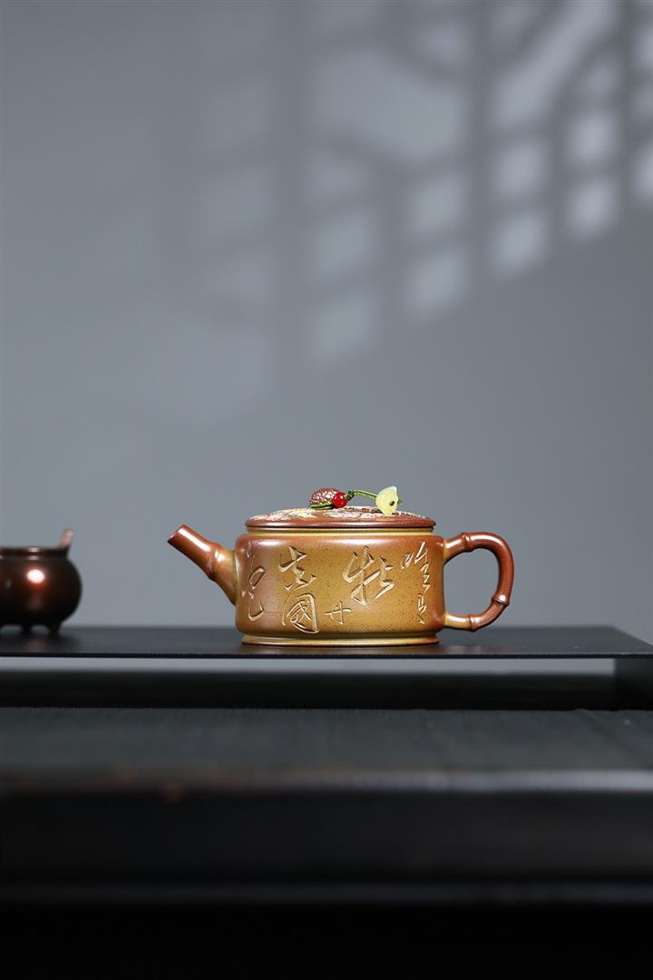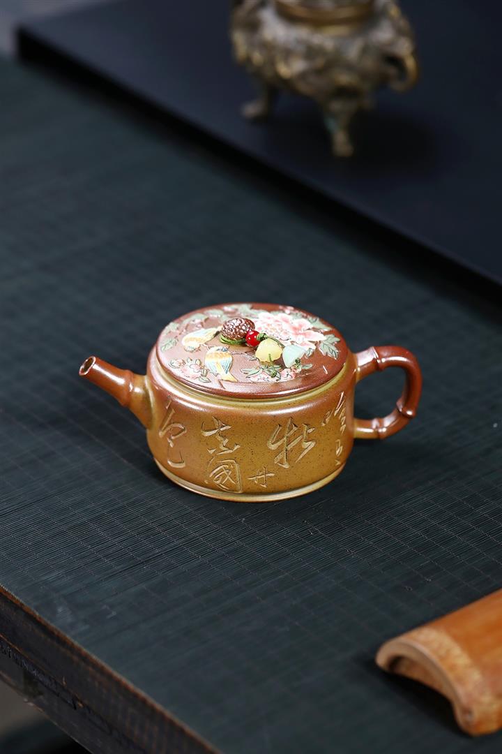 570cc原礦石黃泥滿刻鴻福滿堂茶壺POT8060