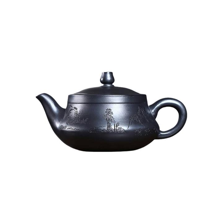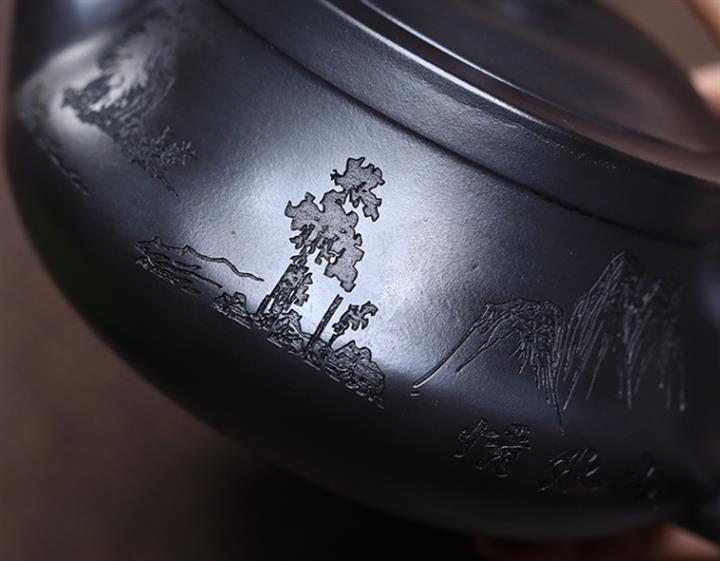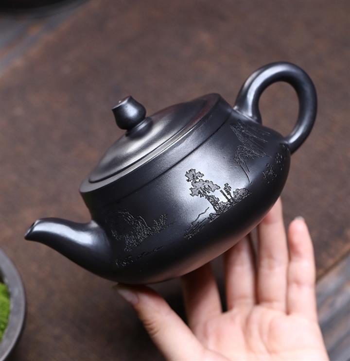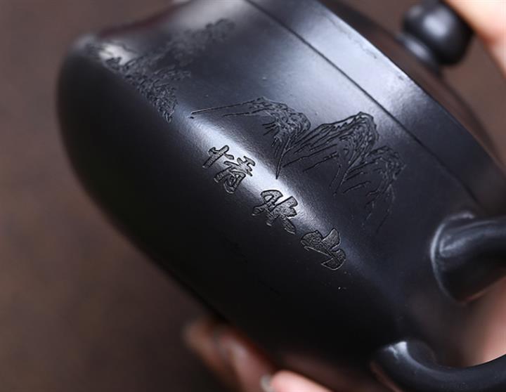 290cc玄鐵石黃黑料金刻龍馬精神茶壺POT8189