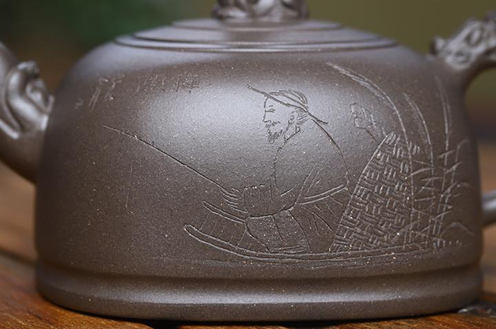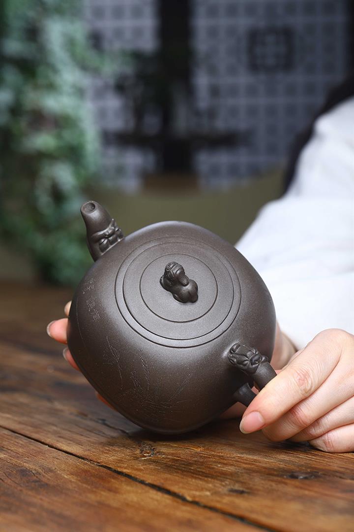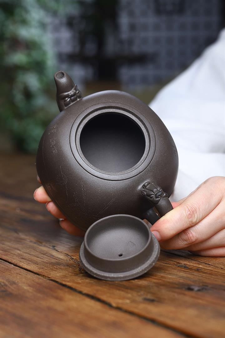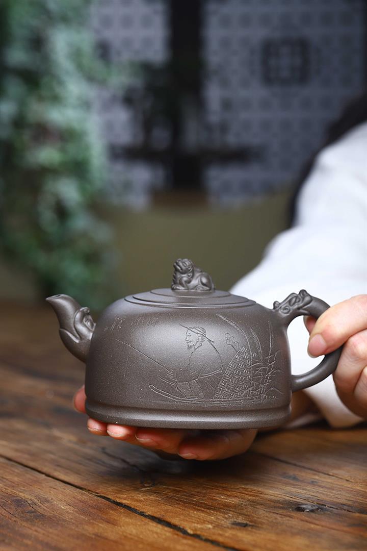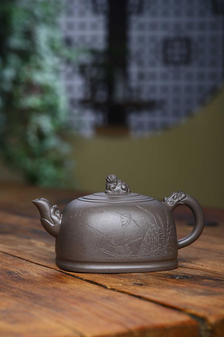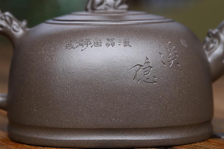 原礦墨綠泥如意山水漢瓦茶壺POT7577