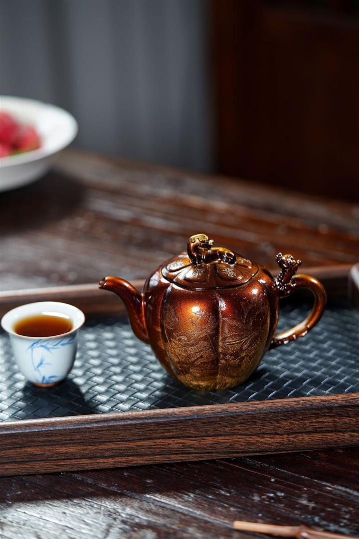250cc原礦高溫段泥貝殼燒蓮花茶壺POT8796