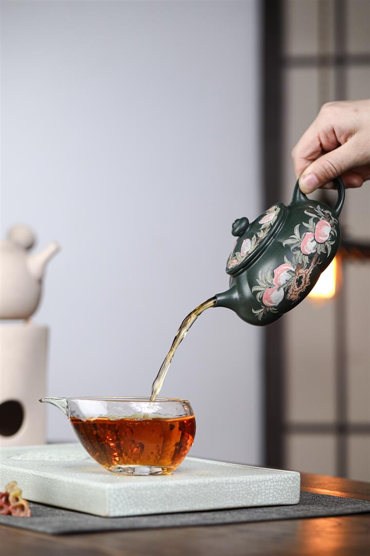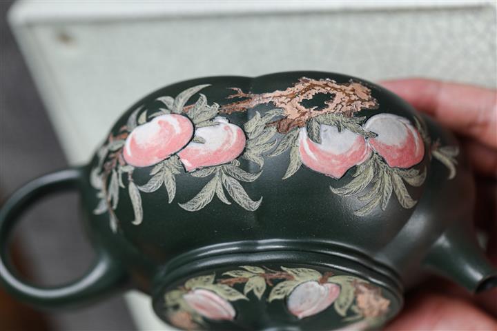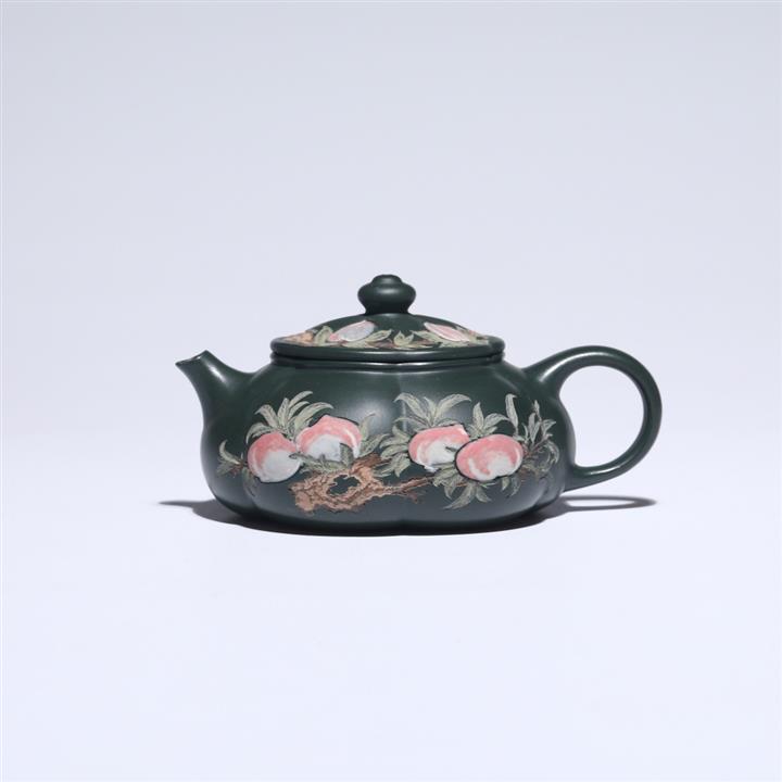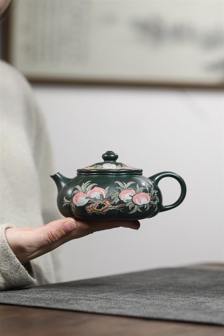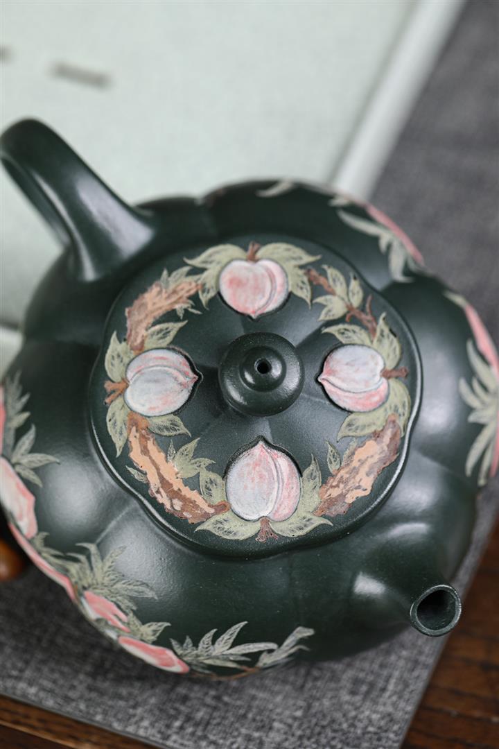 400cc原礦綠泥貝克燒金砂桃源秦權茶壺POT8474