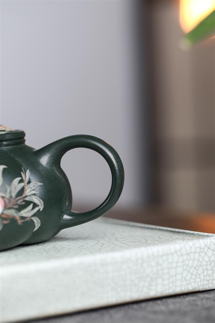 280cc原礦墨綠泥泥繪寒江茶壺POT8804
