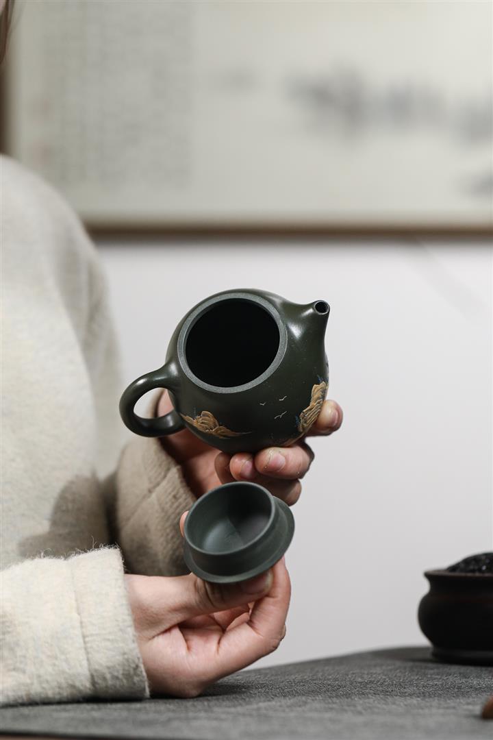 【作品介紹】此款壺形線條流暢,壺把,壺嘴,壺身壹氣呵成栩栩如生,是收藏把玩的好壺,泥料色澤古樸典雅,日久使用,漸露鋒芒,養成變化快,溫潤莊重,用其泡茶,使用的年代久,壺身就溫潤,泡出來的茶湯也就醇郁芳馨。