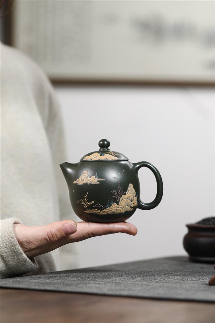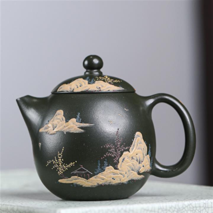 200cc原礦墨綠泥彩繪龍蛋茶壺POT8805