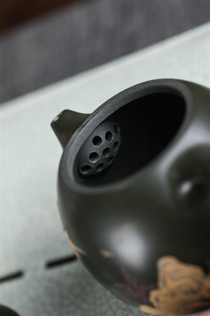 原礦赤龍血砂手工彩繪三足橋瓢茶具POT6688