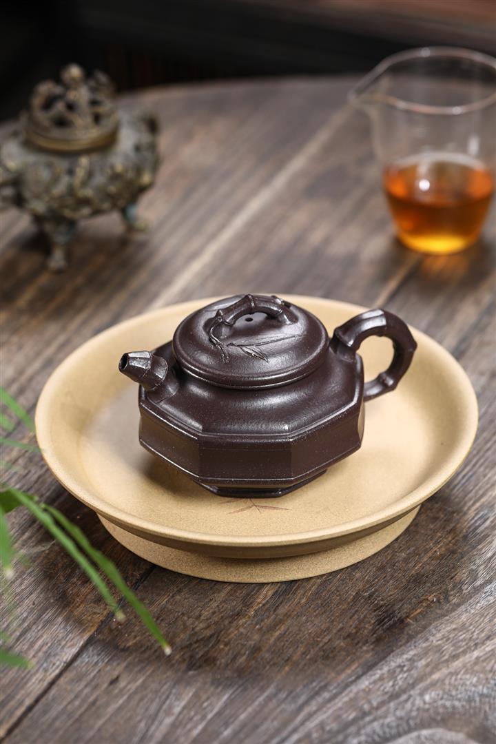 【泥料特點】砂土氣重,似淳實農民,日久使用,漸露鋒芒,養成變化,溫潤莊重。紫砂是壹種雙重氣孔結構的多孔性材質,氣孔微細,密度高。用紫砂壺沏茶,不失原味,且香不渙散,得茶之真香真味。紫砂使用越久,壺身色澤越發光亮照人,氣韻溫雅。紫砂壺長久使用器身會因撫摸擦拭,變得越發溫潤光澤。