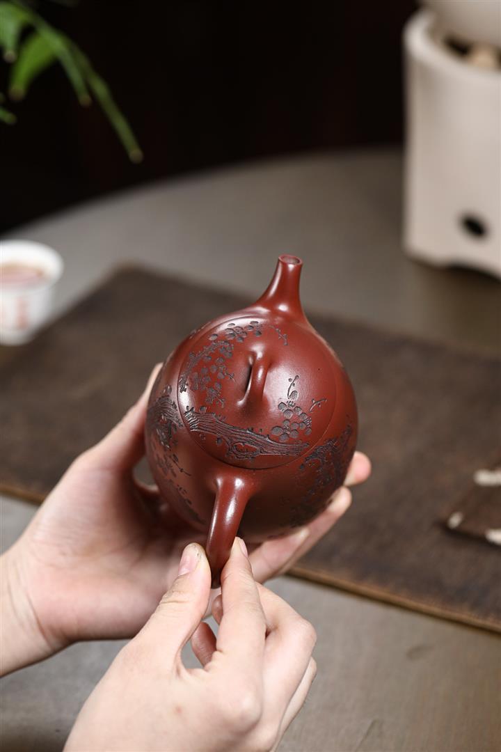 【作品介紹】此款壺形線條流暢,壺把,壺嘴,壺身壹氣呵成栩栩如生,是收藏把玩的好壺,泥料色澤古樸典雅,日久使用,漸露鋒芒,養成變化快,溫潤莊重,用其泡茶,使用的年代久,壺身就溫潤,泡出來的茶湯也就醇郁芳馨。