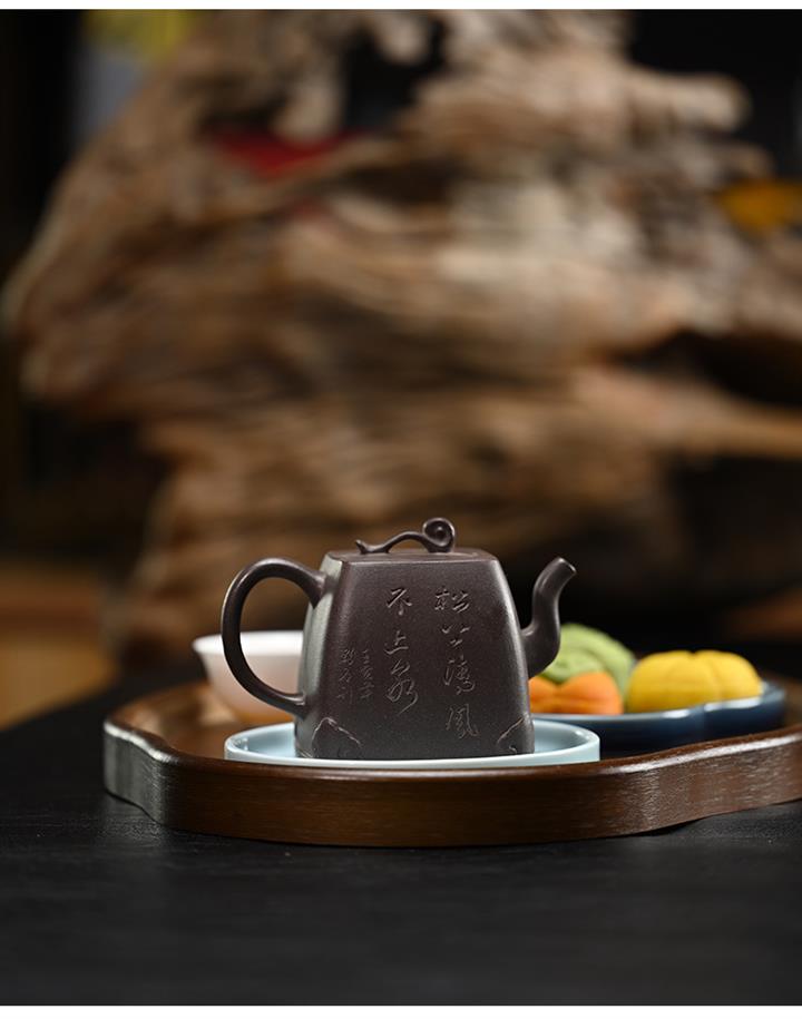 【作品介紹】此款壺形線條流暢,壺把,壺嘴,壺身壹氣呵成栩栩如生,是收藏把玩的好壺,泥料色澤古樸典雅,日久使用,漸露鋒芒,養成變化快,溫潤莊重,用其泡茶,使用的年代久,壺身就溫潤,泡出來的茶湯也就醇郁芳馨。