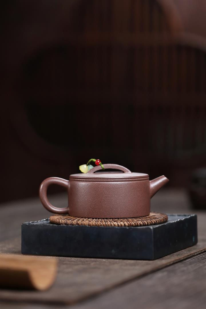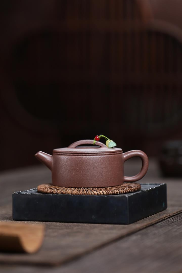 【泥料特點】砂土氣重,似淳實農民,日久使用,漸露鋒芒,養成變化,溫潤莊重。紫砂是壹種雙重氣孔結構的多孔性材質,氣孔微細,密度高。用紫砂壺沏茶,不失原味,且香不渙散,得茶之真香真味。紫砂使用越久,壺身色澤越發光亮照人,氣韻溫雅。紫砂壺長久使用器身會因撫摸擦拭,變得越發溫潤光澤。