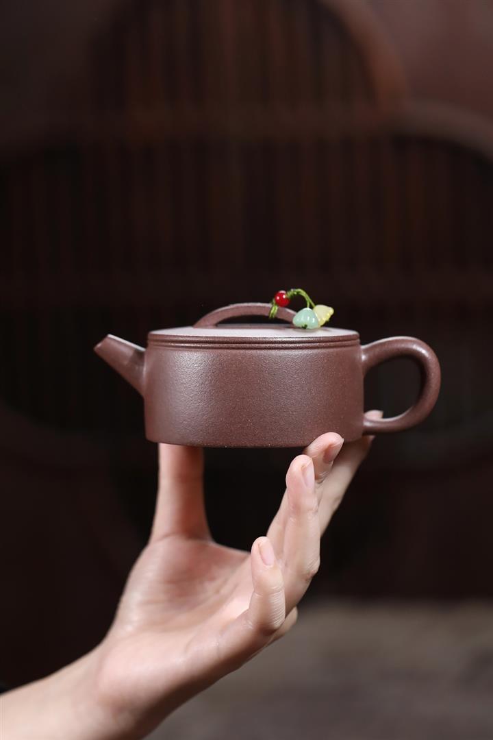 【作品介紹】此款壺形線條流暢,壺把,壺嘴,壺身壹氣呵成栩栩如生,是收藏把玩的好壺,泥料色澤古樸典雅,日久使用,漸露鋒芒,養成變化快,溫潤莊重,用其泡茶,使用的年代久,壺身就溫潤,泡出來的茶湯也就醇郁芳馨。