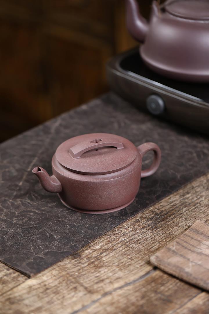 皺皮朱泥虛扁紫砂壺POT5569
