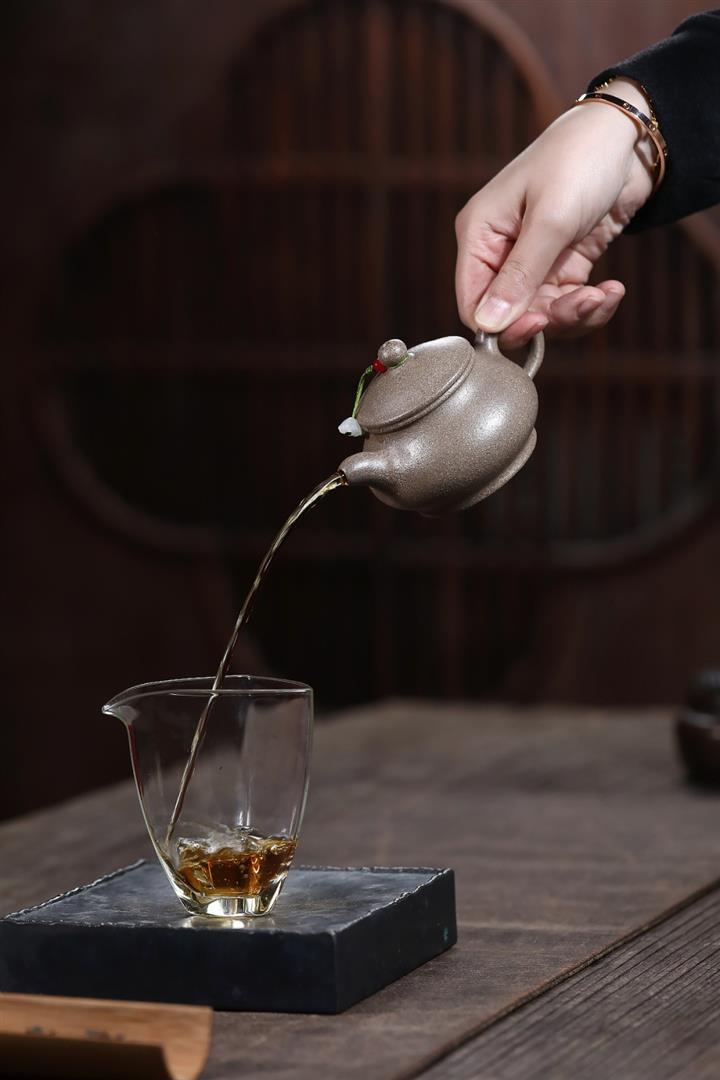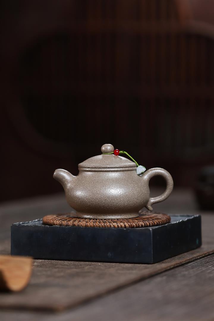 【泥料特點】砂土氣重,似淳實農民,日久使用,漸露鋒芒,養成變化,溫潤莊重。紫砂是壹種雙重氣孔結構的多孔性材質,氣孔微細,密度高。用紫砂壺沏茶,不失原味,且香不渙散,得茶之真香真味。紫砂使用越久,壺身色澤越發光亮照人,氣韻溫雅。紫砂壺長久使用器身會因撫摸擦拭,變得越發溫潤光澤。