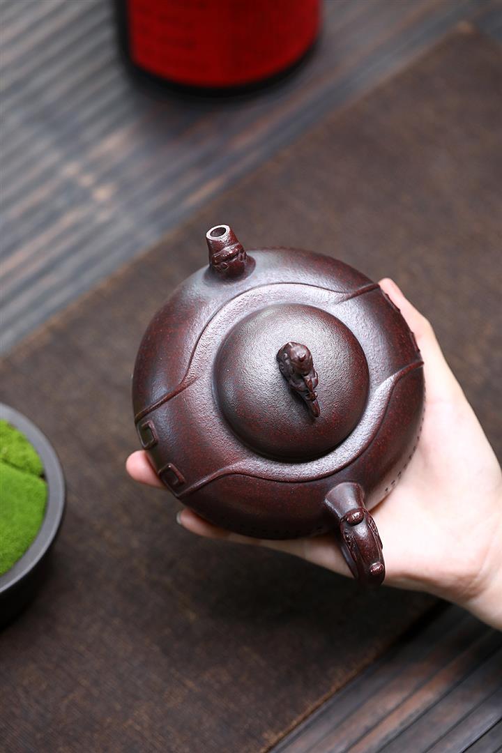 原礦古紅泥純手工扁蓮燈茶壺POT6801