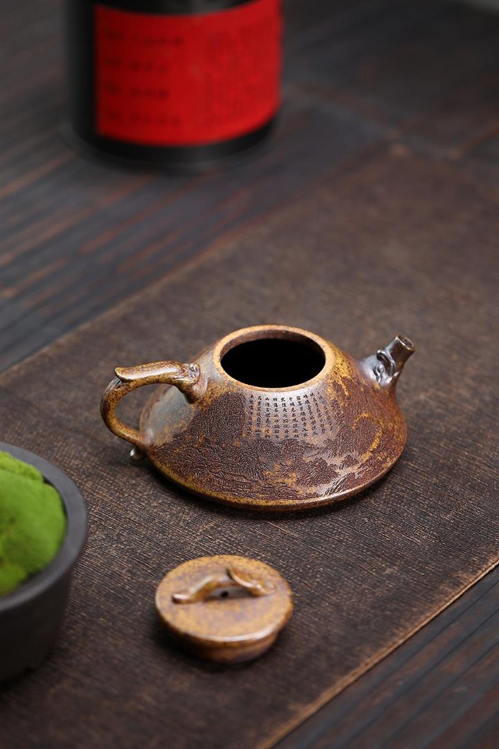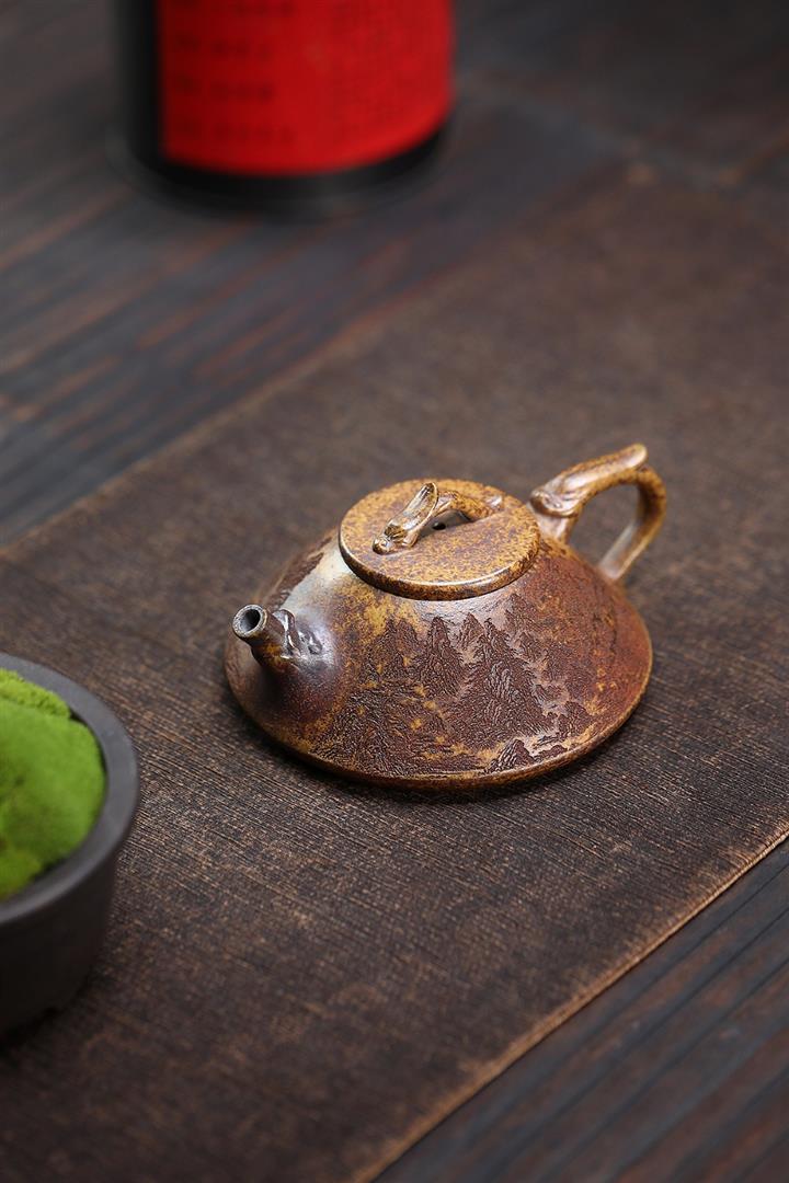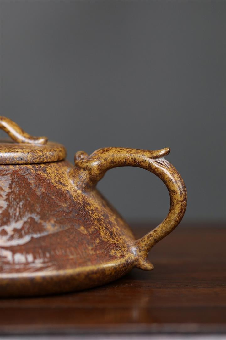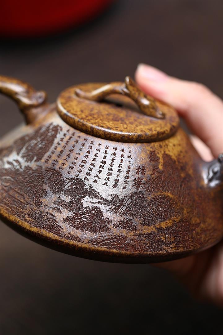 原礦紅皮龍刻竹漢瓦紫砂壺POT5455
