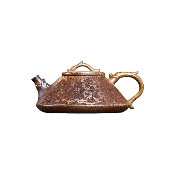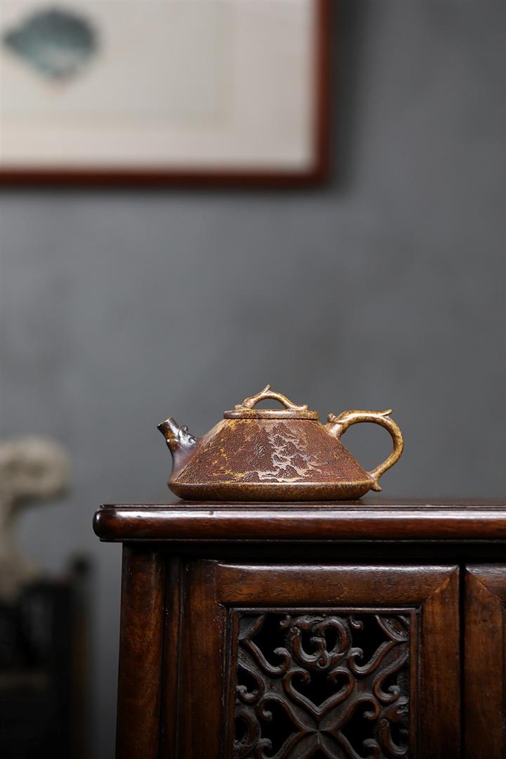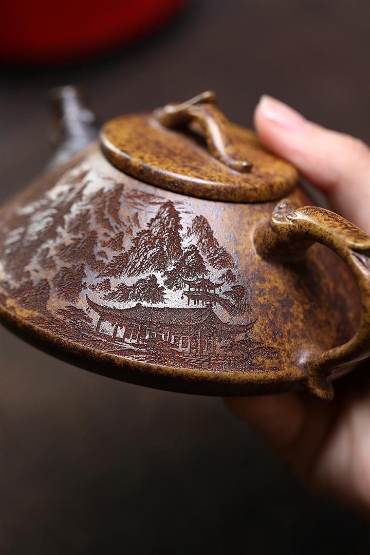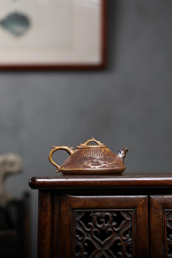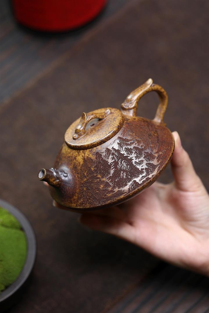 原礦紅皮龍刻竹漢瓦紫砂壺POT5455
