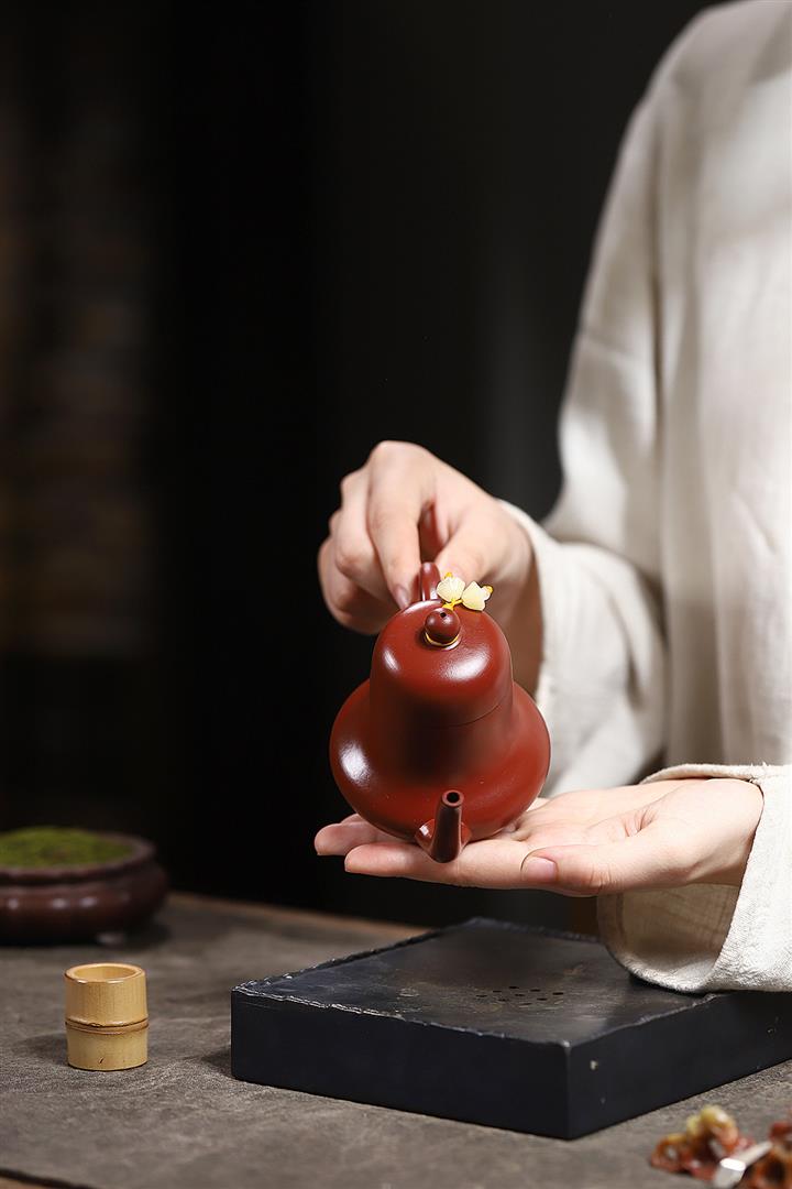 原礦赤金朱泥手工牡丹玉盤茶壺POT6690