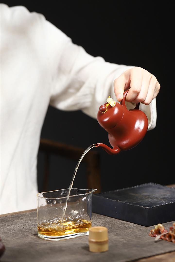 【泥料特點】砂土氣重,似淳實農民,日久使用,漸露鋒芒,養成變化,溫潤莊重。紫砂是壹種雙重氣孔結構的多孔性材質,氣孔微細,密度高。用紫砂壺沏茶,不失原味,且香不渙散,得茶之真香真味。紫砂使用越久,壺身色澤越發光亮照人,氣韻溫雅。紫砂壺長久使用器身會因撫摸擦拭,變得越發溫潤光澤。