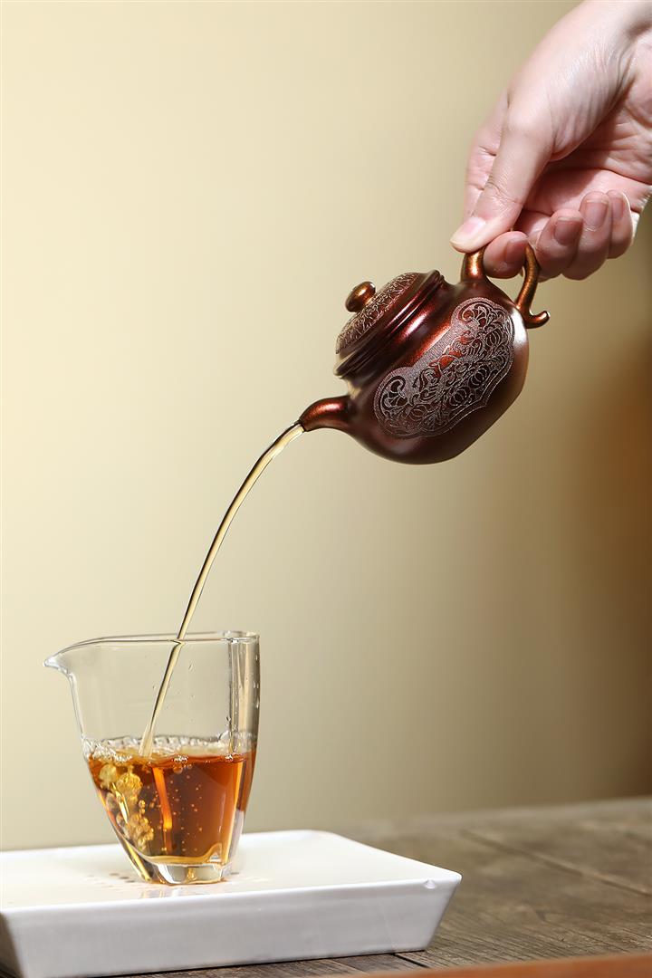 【泥料特點】砂土氣重,似淳實農民,日久使用,漸露鋒芒,養成變化,溫潤莊重。紫砂是壹種雙重氣孔結構的多孔性材質,氣孔微細,密度高。用紫砂壺沏茶,不失原味,且香不渙散,得茶之真香真味。紫砂使用越久,壺身色澤越發光亮照人,氣韻溫雅。紫砂壺長久使用器身會因撫摸擦拭,變得越發溫潤光澤。