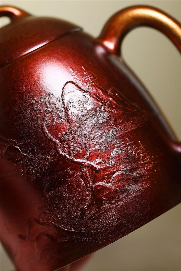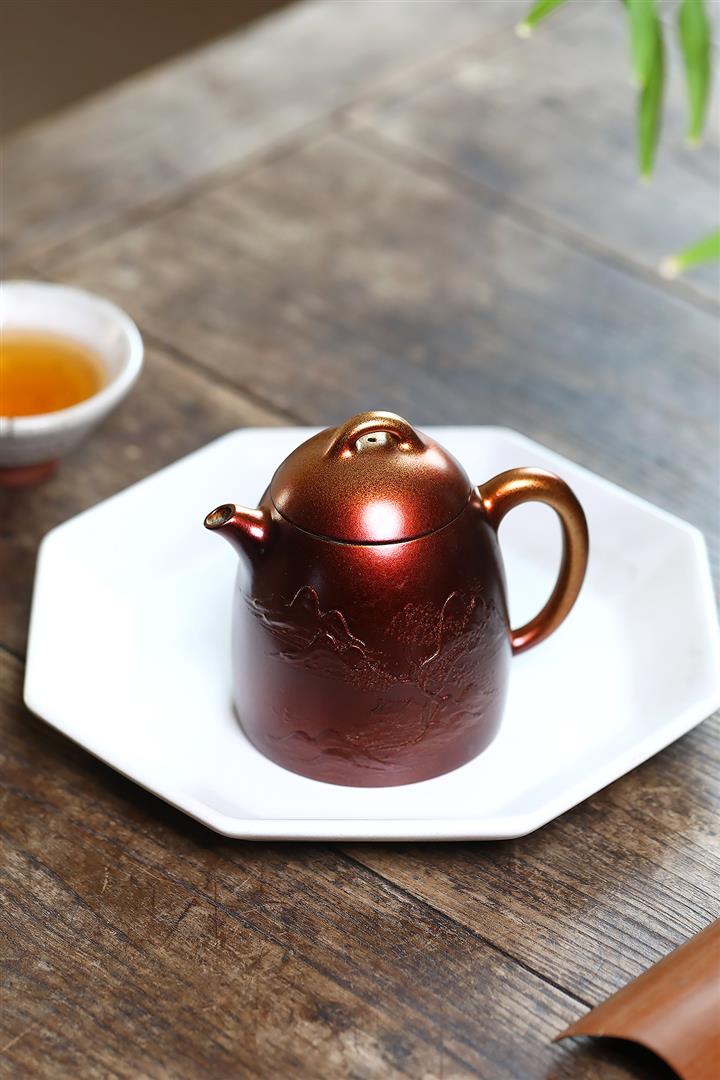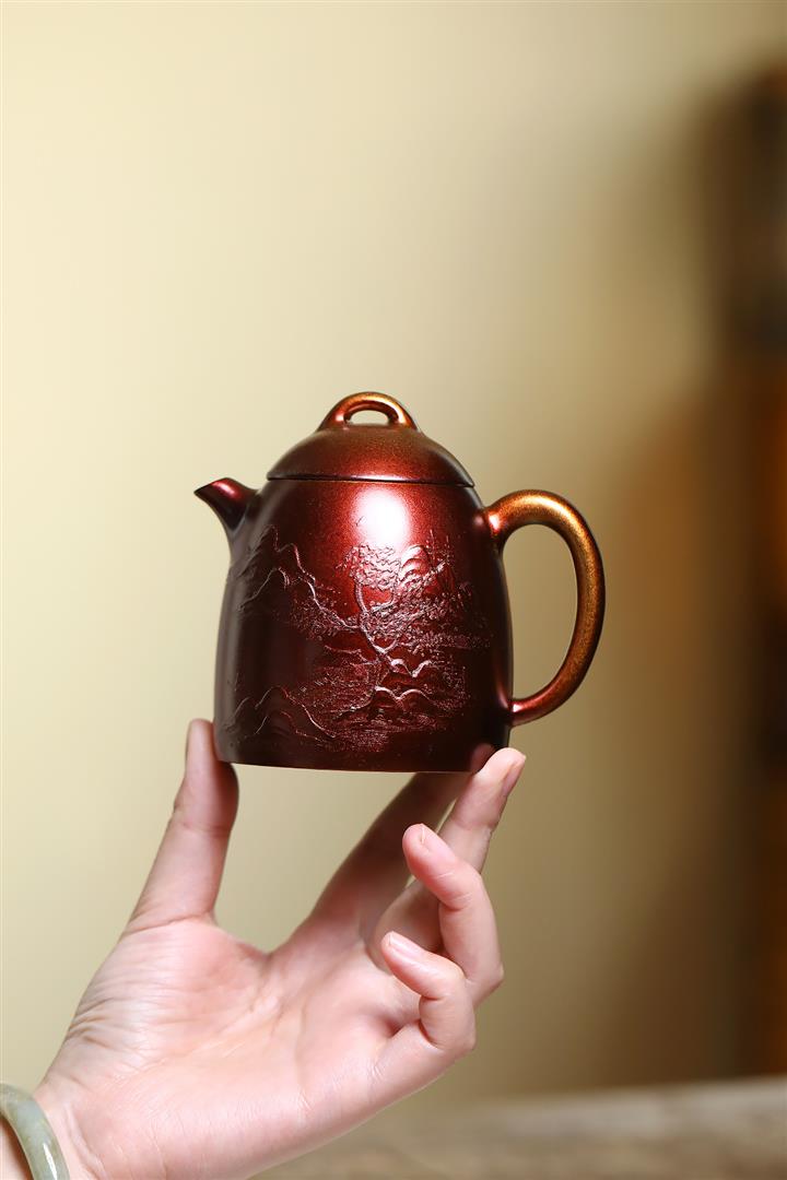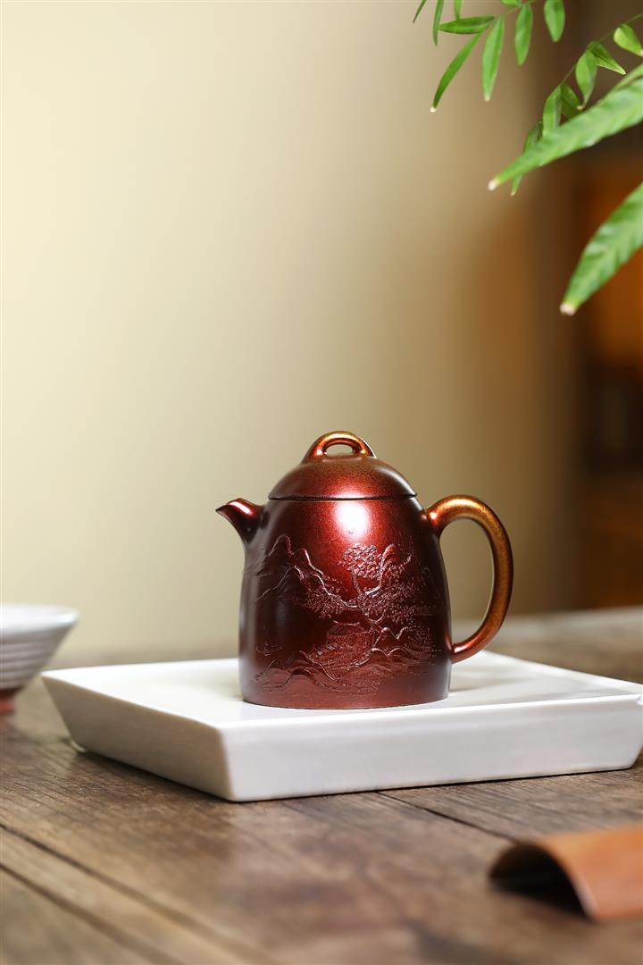 全手工刻繪原礦紫泥納財紫砂壺250cc pot3665