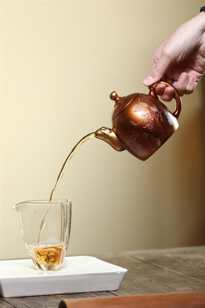 【泥料特點】砂土氣重,似淳實農民,日久使用,漸露鋒芒,養成變化,溫潤莊重。紫砂是壹種雙重氣孔結構的多孔性材質,氣孔微細,密度高。用紫砂壺沏茶,不失原味,且香不渙散,得茶之真香真味。紫砂使用越久,壺身色澤越發光亮照人,氣韻溫雅。紫砂壺長久使用器身會因撫摸擦拭,變得越發溫潤光澤。