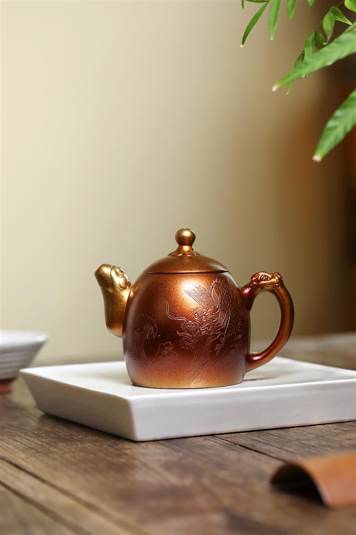 紅降坡手工喜上眉梢玫紅漢瓦茶壺POT6811