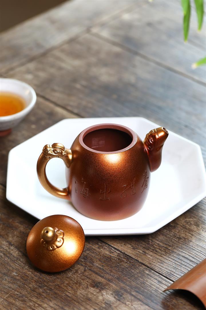 降坡泥手工喜上眉梢思婷玫紅茶壺POT6808