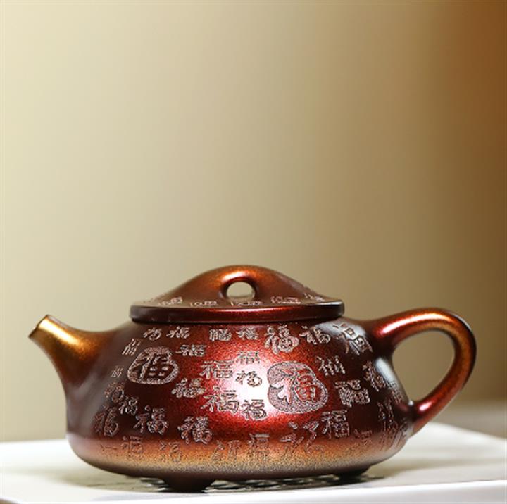 220cc原礦龍血砂貝殼燒百福景舟石瓢茶壺POT8835